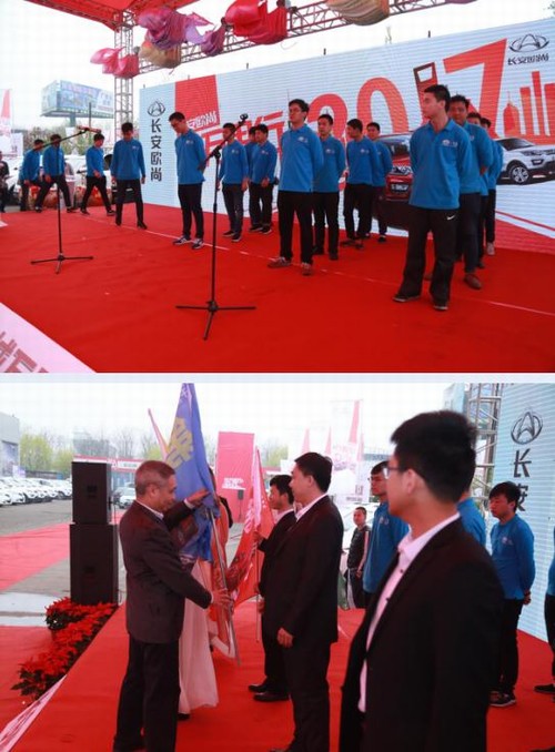 领导授旗,宣誓豪言壮语 雄心比天,壮志不减!誓词一字一句,铿将有力,都是豪言壮语,表达着河北战队保证完成任务的决心与信心。2017,长安欧尚百车千城万里行,河北必胜! 试乘试驾,体验明星车型 |