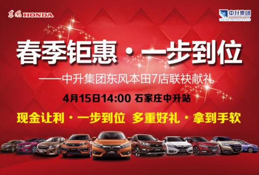4月15日,中升东本春季钜惠,一步到位——中升集团东风本田7店联袂献礼! 4月15日,中升集团7店联合出击!全国4个省市7个地区跨区域同时发力! 4月15日,钜惠价格不能再低,简直乱来,已经惊动集团高层! 这一次,现车供应,限时疯抢; 这一次,击穿底价,钜惠全城; 这一次,打破常规,任性到底; 这一次,多重豪礼,疯狂派送; 一重礼:进店礼:到店送好礼,送“中升马克杯”1个;(数量有限,送完即止) 二重礼:互动礼:凡活动当天到店客户,均可参与互动,赢取精美礼品; 三重礼:红包礼:凡活动当天到店客户即可抽取红包,赢取大额现金; 四重礼:抢订礼:活动当天订车前20名客户,均可获抢订礼一份; 五重礼:订车抽奖礼:凡活动当天订车的客户,均可参与抽奖,赢取超值大礼; 六重礼:置换礼:凡活动当天到店置换成功的客户均可畅享精美礼包一份; 七重礼:续保礼:凡当天到店续保客户,享“车辆保险续保折扣,并可获得精美礼品一份;(数量有限,送完即止) 八重礼:金融分期礼:凡活动当天订车客户,可享多重金融方案,享超低利率; 九重礼:特供车型礼:完美组合,完美价格; 十重礼:集赞礼:活动期间,只要转发本活动信息,并获好友36个赞,即得车模一个。 选对品牌选对店,买车不花冤枉钱! 不用等五一,不用怕买贵,4月15日中升东本店春季钜惠抢购活动火热报名中! 你还在等什么,钜惠就在北二环 中升东本店!买车就选中升东本店! 4月15日14:00我们不见不散! 公司名称:石家庄中升 东风本田4S店 公司地址:北二环与建华北大街交叉口西行600米路北 销售热线:0311-8683 6658 售后热线:0311-8683 8898 救援热线(24小时):0311-8683 8898 续保热线:0311-8683 1320 |