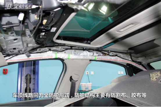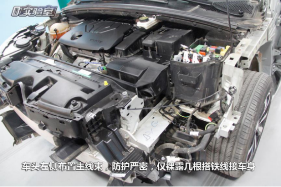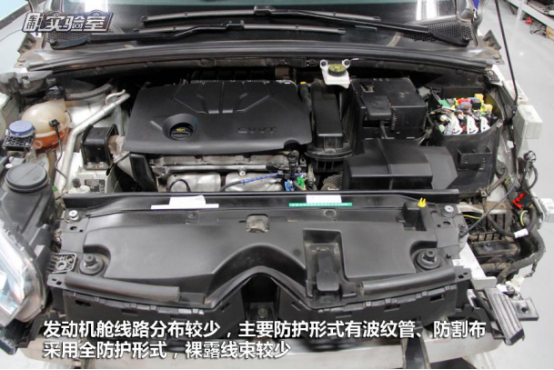车顶底板防护总结: C4世嘉车顶不但拥有天窗框架加固,另外还设置了215mm宽的车顶加强筋和两大块止震贴,这当然提升了车顶的防护级别。C4世嘉地板防护表现并不出彩,但和等价位车型相比也并不差,符合当下同价等级车的主流水平。 第四节:线路防护 C4世嘉发动机舱线路采用了全防护形式,主要防护手段有波纹管+防割布+胶布缠裹的形式,裸露线材较少,这当然也是为了应对机舱内的高温。 我们来看车头左侧的线束细节,主线束全部被防割布包裹,耐磨防损。 车顶线路包括天窗线束和侧气帘线束,同样采用了全防护形式,防护手段有防割布和胶布缠裹,防割布在耐磨损的优势下还能减少因为振动而产生的摩擦噪音。 驾驶舱里沿左侧门槛内部布置的是主线束,C4世嘉主线束被罩盖覆盖,同样也是防割布全不缠裹,熟悉车讯实验室的车友应该对大把裸露的主线束并不陌生,在这些看不见的位置,C4世嘉也没有“压缩”成本,这当然更多是为了安全考虑。 |