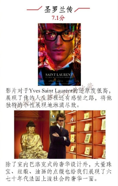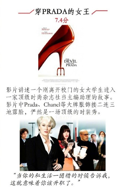 说起时尚大咖,仿佛离普通人很遥远。但是追求时尚和美丽的心人皆有之。不如说,人在与他人的社会相处中逐渐趋向于认同流行与时尚。而如何去了解真正引领时尚的人,我们不妨从影视剧中去了解。 Coco Chanel现如今已经成为时尚标配,而她的创始人是如何展开对时尚的探索的呢? 说起YSL,就能想起女生们疯狂采购的一支支口红~而在这部影片里,可以看到YSL本人经历的那个色彩斑斓的时代。 这一部就是耳熟能详的作品了,而且安妮海瑟薇的精彩表演也给人留下深刻印象。 |