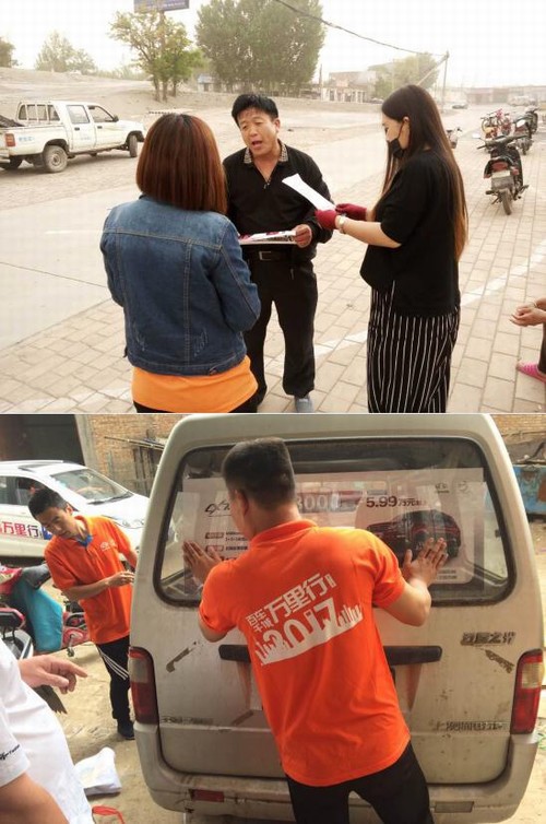 最近几天的天气特别不好,虽然没有烈日,但到处都是扬沙和浮沉,甚至有沙尘暴出现,但即使是这样,依旧没有阻挡工作人员的脚步。本周百车千城目的地,沧州河间和青县。 使命在心里,我们信念坚定,无所畏惧 贴单透、圈竞品,赠送玻璃水,感谢消费者对我们的支持与帮助,将长安欧尚最新的优惠信息传播出去。 |