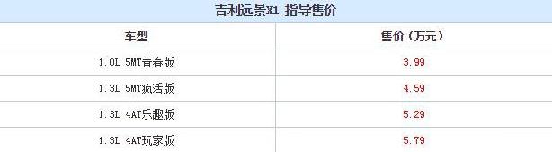 5月20日,吉利旗下的全新小型SUV——吉利远景X1正式上市,新车将推出搭载1.0L和1.3L发动机的共4款车型,售价区间为3.99-5.79万元,详情请见下表。 吉利远景X1定位于入门级小型SUV,外观部分继承了吉利的家族式设计,整体造型乖巧可爱,主要瞄准年轻消费群体。新车的车身尺寸为3778×1663×1519mm,轴距为2353mm,离地间隙170mm,并提供清纯白、浪漫金、机智黄、自由橙、激情红、天真蓝共6种车漆选择。 |