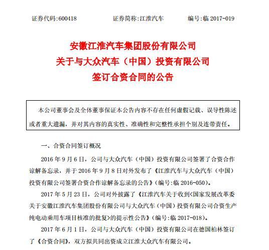 6月1日,在中德总理的见证下,安徽江淮汽车集团股份有限公司(以下简称“江淮汽车”)与大众汽车(中国)投资有限公司(以下简称“大众汽车”)在德国柏林签订了《合资合同》,双方拟共同出资成立江淮大众汽车有限公司,英文名称为JAC Volkswagen Automotive Co., Ltd.。 未来,二者将利用各自在传统内燃机汽车和新能源汽车领域的技术和商务优势,以新能源汽车产品为基础,成立一家研产销一体的合资公司,在新能源汽车整车及零部件的研发、生产、销售、出行方案等领域开展全方位合作。 合资公司成立后将立即着手准备规划全新新能源汽车工厂的建设,根据目前测算,目标是年产量36万辆规模产能,建厂具体方案由合资公司制定。合资公司将设立一个新品牌,且该品牌由合资公司拥有,相关商标也将由合资公司注册。 根据江淮汽车与大众汽车签订的合资合同公告显示,合资公司可以根据董事会一致通过的决议,申请、注册自己的中文、拉丁文字及图形商标,并可以将该等商标应用于合资公司的自有产品。 根据董事会的决定,合资公司可以对包括新能源汽车(包括但不限于纯电动和增程式乘用车)、电动汽车电池、整车以及其零部件、组件、配件、专门为特定市场(包括中国市场和出口市场)开发的产品进行开发、生产和/或销售。 据了解,该合资公司的经营范围包括:研发、制造新能源汽车,包括纯电动和增程式乘用车;研发、制造电动汽车电池等新能源汽车相关核心部件;销售整车以及其零部件、组件、配件;进口及在中国购买其开展业务活动所需要的货物及服务;出口整车以及其零部件、组件、配件;保证其产品的售后服务;仓储和运输服务;培训、咨询、试验和技术服务;出行解决方案服务;二手车平台服务;车辆互联及大数据等服务;以及开展与上述经营宗旨和经营范围有关的和/或支持上述经营宗旨和经营范围的其他业务活动。 此外,合资公司可以在移动出行、车辆互联、大数据、二手车平台、再制造等新业务领域进行合作,该等新业务应由江淮-大众销售出行服务有限责任公司(“销售出行公司”)负责,大众集团全球该等业务领域的平台和经验可优先提供合资公司利用。 关于董事会的架构组成,公告中也做出了详尽的说明。合资公司董事会应由八名董事组成,其中四名由甲方委派,四名由乙方委派。每一方可以以向合资公司发出书面通知并抄送对方的方式任免由其委派的董事。董事任期四年,且经原委派方继续委派,董事可以连任。首届董事会的董事任期始于成立日,乙方委派的董事担任董事长,甲方委派的董事担任副董事长。 一系列细节的公布,意味着江淮大众项目正在一步步走向“现实”。对于合作双方而言,这都是一个新的开始,未来走势如何还需时日观察。 |