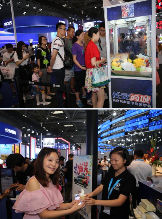 长安展台惊喜连连 清凉消暑的冰淇淋机、趣味多多的抓娃娃机、身姿妙曼的模特辣妹……长安汽车展台每一处都让人惊喜不已,乐趣十足。在舞台当中,长安汽车为消费者准备了精彩绝伦的舞蹈,你看那曼妙多姿的身影,加上轻快活力的韵律,正与长安汽车的气质相得益彰。随着主持人的解说,长安汽车的展台当中被观众簇拥,趣味性的互动活动再次让长安展台兴奋起来,各种小礼物拿到手软。 |