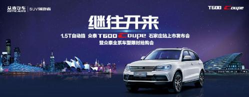 2017年7月1日,作为众泰汽车“继往开来”诚意之作,众泰T600 Coupe石家庄站上市发布会暨众泰全系车型限时抢购会活动圆满举办! 本次众泰T600 Coupe上市发布会,共推出11款车型,搭载1.5T或1.8T涡轮增压发动机,匹配5MT、6AT和6DCT三款变速箱,尤其是首次采用的1.5T-6AT动力系统,更是填补了细分领域的空白,同时,众泰T600Coupe作为众泰汽车的首款都市酷跑SUV,亲民的起售价格,彰显了众泰人不忘初心,只为老百姓造“好车”的决心和信心。 作为众泰汽车首款都市酷跑SUV,众泰T600 Coupe在拥有前卫造型、至臻内饰及革新动力的同时,更将众多高端科技配置融汇其中,自亮相以来,吸引了极高的关注! 现场邀请了石家庄地区20余家汽车主流媒体参与了本次上市发布会,为迎合消费者而不断改变,众泰汽车在不断改变的路上坚持改变,实力征服一切!另外,众泰还在现场举办了旗下全系车型的限时抢购会,众泰多款车型可在当天现场享受厂方提供的重磅优惠政策以及众多惊喜购车礼。 活动现场,石家庄知名乐队现场激情献唱,点燃来宾的热情! 众泰控股集团永康销售中心华北大区营销总监杨建伟先生首先向在场的嘉宾致欢迎词,并对2017年上半年众泰汽车取得的骄人成绩进行了精彩回顾,同时,表示在面临着日趋激烈的市场环境和消费者多变的个性需求,众泰汽车始终以不断向前的姿态去刷新自己,不断的进步。 伴随着恢弘震撼的启动仪式,厂家及4S店领导启动继往开来之钥,T600 Coupe震撼亮相,正式与现场的嘉宾见面!整车悬浮顶造型的极致勾勒,营造前卫时尚的直观印象,充满流线感的线条设计,饱满且富有质感,完美的造型设计,怦然触动每一位消费者的美学感官,赢得全场亲睐! |