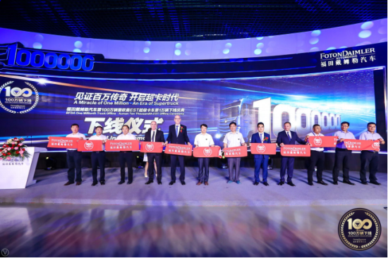2017年7月10日,主题为“见证百万传奇开启超卡时代”福田戴姆勒汽车第100万辆暨欧曼EST超级卡车第1万辆下线庆典仪式在京隆重举行。来自中物联、福田戴姆勒汽车的相关领导、超级卡车全球创新联盟成员、核心用户、经销商、供应商、服务商以及功勋员工、媒体代表共同见证了欧曼第100万辆重卡下线这一里程碑时刻;这昭示着历经15年发展、5代产品迭代的“欧曼”正式迈入“重卡百万俱乐部”。庆典仪式上,福田戴姆勒汽车正式发布了面向未来的“超级卡车品质工程”,这意味着欧曼将持续以品质创新引领重卡变革,为全球重卡用户创造最佳商业价值。 【福田戴姆勒汽车第100万辆暨欧曼EST超级卡车第1万辆下线剪彩】