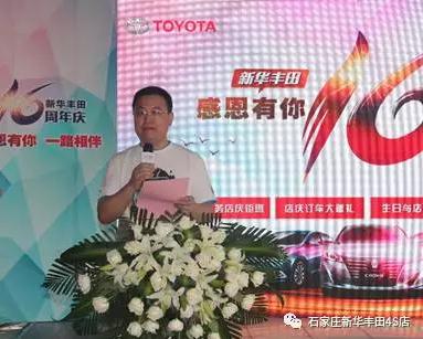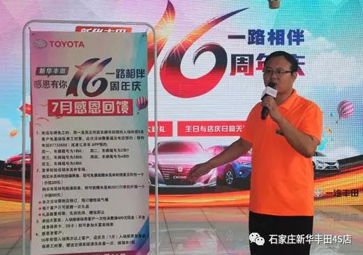 十六年的奋斗耕耘,十六年的沧桑岁月;十六年的春华秋实,十六年的励精图治;“新华丰田”人以企业为家,事业为魂,以服务顾客为最高标准,耕耘不辍,创造着一个又一个辉煌。7月15日,石家庄新华丰田十六周年店庆活动在4S店内隆重举行。此次活动现场汇集了众多车主以及各界贵宾,现场人气火爆,座无虚席。 新华丰田总经理贾总致辞,感恩客户多年的支持,感谢员工辛勤付出,共同谱写新华丰田16年的辉煌历程。 总经理与当天首位订车客户共同切“生日蛋糕”,寓意新华丰田继往开来、一切顺利! 店庆月优惠不断,福利不断,让现场来宾心动不已。活动现场公布店庆购车政策,购车享惊喜价格优惠,丰厚售后好礼,除此外贷款、二手车、装具等都有惊喜折扣。 值此十六周年之际,新华丰田感恩老客户,现场进行多轮抽奖,将多种好礼倾情回馈。 活动现场客户订车热情高涨,终极订车奖的抽取更是将现场气氛推到高潮。 活动过程中花嫁婚纱摄影、88潮牌星咖店、正定天山熙湖、花之吻新苑店、中影概念、铭冠影像、引擎风暴等高端异业联盟鼎力支持,送上精美好礼和真挚祝福。 十六年风雨,缔造精英团队;十六年历练,打磨高端品质;十六载春秋,让我们继往开来,再续辉煌!今后新华丰田全体还以将丰田汽车的优秀品质、一流的服务提供给顾客为目标,以不断开拓、力求创新为己任,以优质的产品及良好的售后服务赢得市场,踏上新的征程。 感恩有你 一路相伴——石家庄新华丰田16周年感恩回馈季,优惠还在继续,精彩不容错过。 地址:石家庄市北二环西路与泰华街交叉口西南角(水上公园东门北行1000米路西) 服务热线:0311-87733688 13333385701 销售热线:0311-87733888 13333385702 石家庄新华丰田 2015年度丰田金融模范店 2016年度一汽丰田全国保修模范店 匠心卓越 值得信赖 |