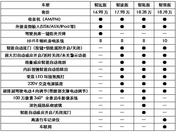 谁是两驱中的性价比之王? 为什么要说两驱不说四驱?很简单CS95的三款四驱车型智尊版、智驭版和智劲版基本上全是高配置高价位的属性,谈性价比本身就不合适,所以今天咱们重点讨论两驱车型! CS95的两驱共有6个版本,除去2款5座车型,还有智远版、智途版、智拓版、智领版4个版本。从下面这张图我们就能明显的看到售价和配置差异: 智途版在售价上比7座入门级的智远版贵了1万,在配置上多了电动后备箱、副驾驶室座椅电动调节、220V/230V电源、自动头灯、车内气氛灯、全车车窗一键升降、感应雨刷。加1万块能多7个实用配置,尤其是这些配置中电动后备箱、副驾驶座椅电动调节已经是这个级别车的亮点配置了,在日常用车当中绝对可以大大的增加舒适度和便捷度,所以这1万块钱完全可以认为是物超所值,有这个经济支持又有享受需要的同志们完全可以入手。 接着咱们来说智拓版,在售价上比智途版多了3千基础上,在配置上多了全景摄像头、感应后备箱、后排侧隐私玻璃。真要说性价比,那么智拓版显然比智途版更优,仅仅多了3千,与之增加的3个配置不仅实用性高,而且在逼格上也有了很大的提升,最关键的一点是,他跟智领版一样拥有更加精致的外观造型,对于对颜值有追求的朋友们来说绝对是最佳选择! 最后再来看看两驱的最高配智领版,比智拓版在售价上多5000元,配置上没有智拓版的全景摄像头、感应后备箱、后排侧隐私玻璃。但是多了内置行车记录仪、定位互动服务、车联网和2个音响,尤其是车联网功能,非常适合爱玩爱体验新鲜感科技感的朋友,而且对于对音质有追求的朋友来讲,2个音响带来的差别可不是一点点呢! 小编观点:横向对比不难发现,在CS95强大的动力和空间的基础上圈定4款两驱7座车型,每一个配置接替增加的价格不多,但是增加的配置却绝对物超所值! 对于大部分消费者来说,智拓版既有大量的实用配置加成,又有更加精致优雅的外观,是购车的最佳选择;但是对于对车联网感兴趣或者喜欢更加硬朗大气的外观的朋友来说,智驭版和智领版也一样是非常合适的! |