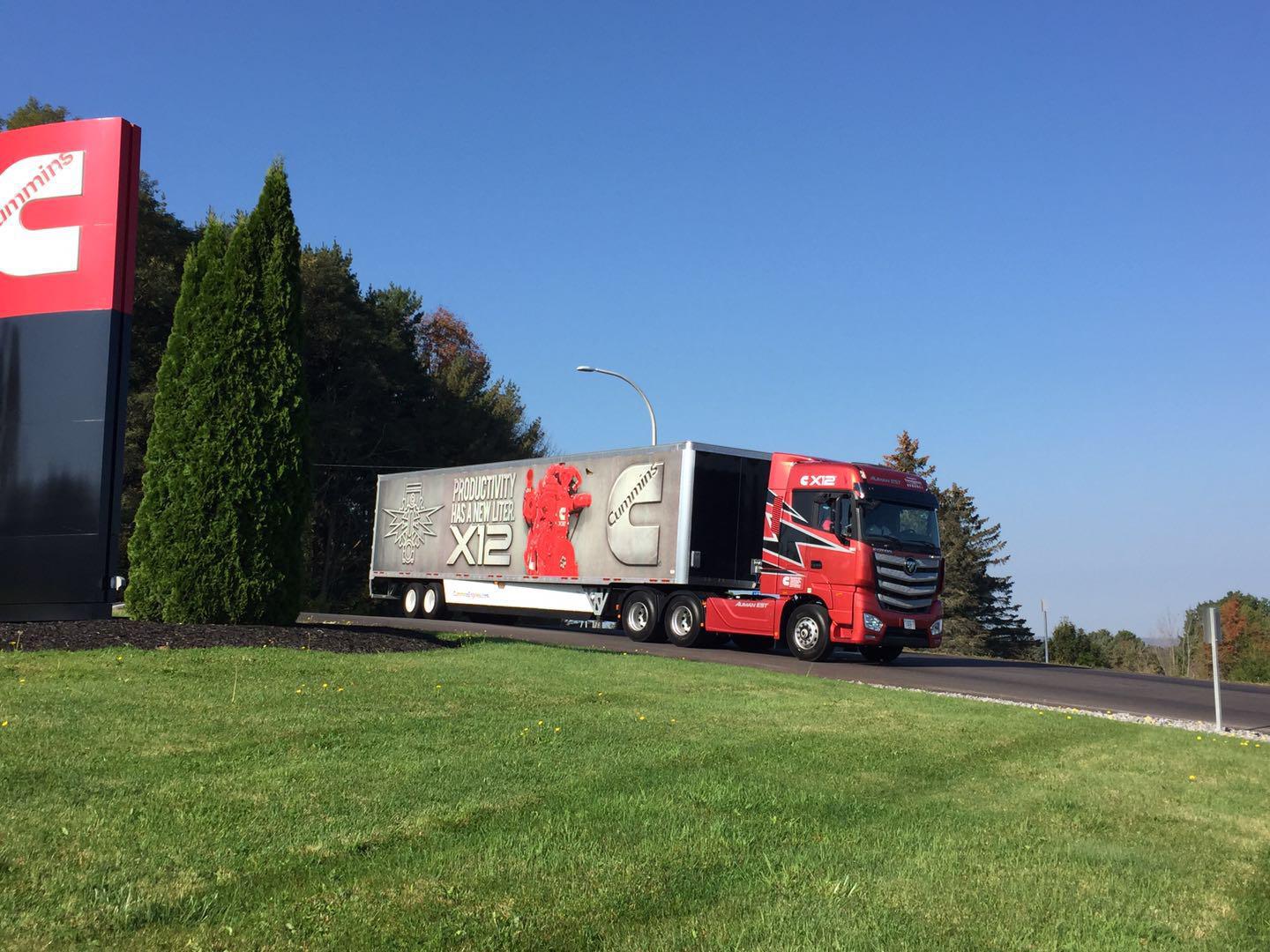 参观完北美商用车展,福田汽车美国发现之旅又来到了位于纽约州的JAMESTOWN。 康明斯在这里有一个非常重要的生产工厂,旗下最重要的两款重型公路发动机X12和X15就在这家工厂里生产,而这两款发动机也代表了康明斯在公路发动机领域的最高水准和前沿综合技术实力。 目前,在美国的康明斯工厂内,有一辆匹配了康明斯最新一代X12发动机的欧曼EST超级卡车正在进行研究和测试,记者有幸近距离接触这款超级卡车,充分体验这款融合全球技术的超级卡车的魅力所在。 为何选择在北美进行测试?这是因为欧曼EST希望把美国超级卡车在技术研究方面的一些经验借鉴到中国,为中国推出最新一代欧曼超级卡车在燃油经济性,驾驶的平顺性以及NVH方面提供借鉴。