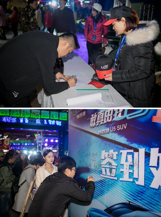 发布会亮点三: 下午18:00,由礼仪小姐迎接嘉宾和媒体朋友们签到领取纳智捷U5限量版潮帽和专属荧光棒、手环。 发布会亮点四: 新车揭幕环节并没有采用传统的领导揭幕方式,而是更加新颖的现代情景剧加舞美的揭幕方式,将U5真正的融入到百姓生活中。在揭幕的瞬间,U5远程手机启动,点亮大灯,成为全场关注的焦点! |