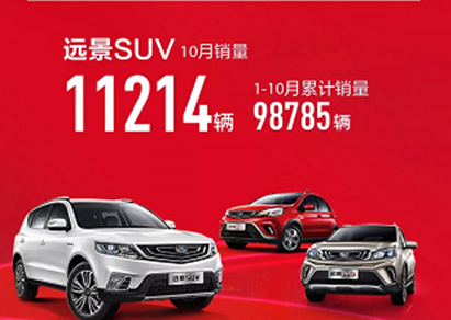 在“金九银十”这个传统销售旺季,一款SUV车型的销量无疑可以看出其在市场上的火热程度。作为吉利汽车旗下一款“中级家享SUV”,远景SUV面对今年降价、新车进入等造成激烈的市场竞争态势,不仅随着吉利汽车迅猛发展向上的势头以持续月销破万的节奏,巩固了“8万元级SUV性价王”的地位,而且以8月、9月、10月三连涨的热销势头,诠释了“强者恒强”的含义。 近日,吉利汽车官方公布的10月份销量数据显示,远景SUV销量再度破万,攀上11,214辆新高,稳居“万辆俱乐部”,展现出“8万元级SUV性价王”稳稳的“幸福力”。至此,这款上市首月即破万,创下吉利汽车上市新车单品销量最快破万记录的产品,今年1-10月累计销量突破至98,785辆,为吉利汽车完成110万辆全年销量目标提供着稳健的销售力量。 “幸福”周岁 喜迎销量三连涨 今年8月27日,远景SUV迎来上市一周年。上市一年来,远景SUV凭借着稳重不失时尚动感的颜值、舒适雅致的宽适空间、周到的智能安全配置、稳健精准的操控品质和静谧的车内氛围,以及“中级家享SUV”准确的市场定位,赢得了越来越多的家庭用户的认可和选择,销量持续过万又屡创新高,借着传统旺季的东风一路顺势提速,在8万元级SUV市场中牢牢占据着“王者”的地位。