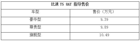 2017年12月6日,比速汽车旗下首款大7座SUV-比速T5的 8AT自动挡车型正式上市销售。新车的整体外观与现款车型基本保持相同,主要采用了一台盛瑞第二代8速自动变速箱,在动力方面搭载1.5T发动机。 此次新车共推出了豪华型、尊贵型、旗舰型三款车型,售价区间为9.39万-10.49万。 此外在2017年12月31日前购买比速T5自动挡车型,将享受比速汽车厂家提供的终身免费质保。详细售价请见下表: ● 经销商讯息 石家庄首家比速汽车认证的A级4S店-比速汽车河北神辰4S店,已经对店面环境进行了全面提升,比速T5 8AT自动挡实车已经到店,颜色以白色为主,配置以旗舰型为主,试驾车即将到位,欢迎莅临,赏车试驾。 比速汽车河北神辰4S店 销售热线:0311-6800 3666 地址:石家庄市北二环与泰华街交口路北 ● 新车特点 ◆ 外观与现款手动挡车型相同 外观方面,比速T5 8AT车型前脸采用了多横幅式不规则进气格栅样式,搭配左右两侧造型犀利的前大灯组,让该车看起来十分运动、时尚。同时,位于其车头下方的前进气口造型以及两侧方正的雾灯造型,也在一定程度上提升了该车的辨识度。 从车身侧面来看,一条锋利的腰线从前轮眉贯穿至尾灯,与隆起的轮眉线条在车身表面塑造出丰富的视觉效果。 尾部方面,新车线条较为简单,新车尾灯组造型与前大灯组呼应,下部单边共两出的排气口和银色下包围饰条结合提升了车尾的整体质感。 ◆ 内饰细节优化、质感提升 内饰部分,新车采用了经典的棕黑配色,搭配大面积的金属拉丝饰板点缀,使该车内饰质感得到大幅度提升,位于下方的挡杆控制区域则进行了全新调整,将中控台下方的空间充分利用。作为一款7座SUV车型,新车采用2+3+2的座椅布局。其车身尺寸方面,长宽高分别为4715/1830/1780mm,轴距为2760mm。 ◆ 动力搭载1.5T发动机并匹配8AT变速箱 动力方面,新车搭载一台1.5T发动机,最大功率输出150马力,峰值扭矩215牛·米。传动方面,匹配一台盛瑞第二代8速自动变速箱。 ◆ 高科技配置更为丰富完善 此次上市的比速T5 8AT车型全系标配了自动大灯、LED日间行车灯、电动调节外后视镜+LED侧转向灯、迎宾灯、车顶行李架、鲨鱼鳍天线、可开启全景天窗等配置。 比速汽车河北神辰4S店 销售热线:0311-6800 3666 地址:石家庄市北二环与泰华街交口路北 |