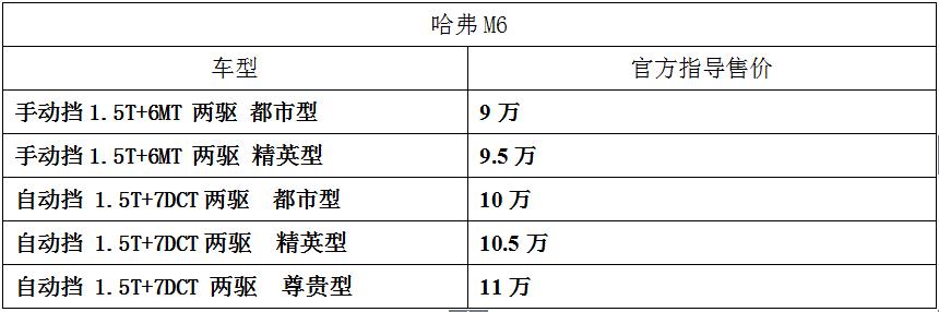 2018年3月20日,新款哈弗M6正式升级上市。此次重装上阵的哈弗M6在动力和配置方面进行了更新升级,换装7速湿式双离合变速器,提供1.5T+7DCT和1.5T+6MT两种动力组合,共5款车型,售价区间为9-11万元。 动力升级 顷刻纵享驾驭激情 新款哈弗M6自动挡车型动力升级为1.5T+7DCT动力组合,最大功率110kW, 210N?m最大扭矩的输出范围为2200-4500转。动力充沛,在日常用车的绝大多数驾驶环境中,它的动力系统都能保持着畅快自如的行驶表现。匹配的变速器是自主研发的7速湿式双离合变速器,曾荣获2017年十佳变速器称号,换挡平顺,反应速度快,保证高效动力输出的同时,提高了整车的舒适性及燃油经济性,百公里油耗仅6.8L。真正实现了小排量、大动力、低油耗,为用户提供更轻松舒适的驾乘体验。 为了让媒体深入体验哈弗M6整车的动态响应与操控性,上市当日,厂家在“渤海明珠”天津举行了全国媒体试驾会,现场还设置了直线加速、紧急制动、高速穿桩、高速变线、直角弯、S弯等一系列试验车子的项目。在直线加速环节中,哈弗M6还是可以很好胜任的。得益于210N·m的最大扭矩,哈弗M6的起步与初段油门显得积极与轻盈,0-60km/h加速感觉动力充沛,如此畅快的加速感受,除了1.5T 的发动机,7DCT变速箱的高效换挡也功不可没,档位切换没有丝毫的拖泥带水,加速动作一气呵成。而在紧急制动时,整体刹车的制动力释放的非常均匀,ABS的介入也并不弹脚 。 卓越的操控实力,让哈弗M6在高速穿桩、变线等环节中,同样有着十分出色的测试表现。哈弗M6采用的是前麦弗逊后双横臂式独立悬架的设计,保证了车辆的操控稳定性及行驶平顺性。在高速变线环节,哈弗M6的车身姿态并没有过多侧倾,柔韧的悬架以及ESP车身稳定系统带来了干净利落的表现,让驾驶者更具信心。此外,哈弗M6方向盘的转向力度以及手感均是极佳。低速轻灵,高速沉稳,精准的指向性颇受现场媒体好评。 简约设计 实力演绎年轻魅力 哈弗M6的中网设计由家族式中网演变而来,内部蜂窝状的结构造型将点线面结合,并进行了多层次全方位3D立体化处理,凸显出整车的时尚动感。异形的悬浮车顶搭配简洁的车身型面,进一步增强整体的运动气息,很好地迎合了当下消费者的审美。大灯的设计简洁,辨识度很高,也非常富有切割感。尾门镀铬装饰条与尾灯相融合,贯穿整个尾部,营造出宽厚的视觉感与稳重感。时尚又年轻,哈弗M6的外观还是颇为靓丽而且耐看。 哈弗M6的内饰延续了哈弗经典的造型设计,非常的简洁大气。中控台采用贴合人体结构学的设计,所有操控动作都在触手可及的范围内轻松完成,让驾驶者能更好的感受驾驶乐趣。车门扶手以及门板等位置均采用了皮质包裹以及软质填充,保证内饰极佳触感的同时,又提升了整体的高级感。此外,哈弗M6还配备了炮筒式仪表盘,为座舱再添些许战斗气息,更加运动。 出众安全 为全家出行保驾护航 哈弗M6在安全性能上的表现还是很不错的。M6配备了智能胎压监测系统、ESP系统、BOS刹车优先系统、上坡辅助、陡坡缓降、倒车影像以及驻车雷达等一系列主动安全配置,让用户的出行更安全、更轻松。在被动安全方面,除了双安全气囊和侧气囊以及侧气帘,哈弗M6还采用高强度笼式车身结构,车身分为溃缩吸能区及高强度座舱区,能在碰撞发生时吸收碰撞能量,并将其分散至车身各部位骨架,保证乘员舱空间不致变形,从而有效的保护车内乘客的安全。相较于老款车型,新款M6还增加了在发生侧撞时可以保护用户头部的侧气帘,为用户提供了无微不至的安全防护。 高配置大空间,享受更舒适的驾乘体验 不仅是安全配置惹眼,哈弗M6的舒适性和便利性配置的水平也是十分厚道。哈弗M6全系标配智能启停、8英寸MP5中控屏、一键启动系统、无钥匙进入系统、双温区自动空调、多功能一体式后视镜、CCS定速巡航系统等精良配置,为用户提供了更舒适、更便利的用车生活。值得一提的是,新款车型全系增加了Carlife ,操作更加智能方便。此外,精英型和尊贵型还增加了后排空调出风口,即使坐在后排的家人也能享受到适宜的温度。丰富的舒适配置,很好地体现了哈弗M6对用户及其家人体贴入微的造车理念。 作为一款超值的家用SUV,哈弗M6的空间岂可不大。M6的车身尺寸为4649*1830*1705mm,轴距为2680mm,领先同级的轴距及出色的车身尺寸造就了哈弗M6宽敞舒适的内部空间。充足的前/后排腿部空间,能让乘坐人员的腿脚得到最大程度的舒展放松,乘坐宽敞不拘束。此外,哈弗M6的后排座椅不但可以角度调节 ,还可4/6比例放倒,十分灵活方便,在提高后排乘坐人的舒适性的同时,还增加了后备箱的容积。808L的后备厢在标准状态下容积已不算小,经座椅调整后,其容积可达超级充裕的2010L,全家出行完全HOLD住,像烧烤架、婴儿车、行李箱等都通通装的下。 顶尖配套 强有力的品质保证 哈弗一直以“专注、专业、专家”为品牌理念,以高科技装备和高性能设计为支撑,为用户提供更高价值的优秀产品。坚持专注产品,从整车的研发、设计、零部件供应到生产等每一个环节,哈弗都对其都进行了严苛的质量管控。尤其是在供应商方面,哈弗M6所用零部件均来自于国际一流汽车零配件供应商。此次上市发布会,哈弗就向现场的媒体展示了哈弗M6的零部件,如博世的ESP总成、前/后轮速传感器总成,奥托立夫汽车的安全气帘以及联合汽车的进气压力
