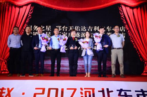 荣获影响燕赵2017河北车市总评榜·年度最佳品牌科技的是——氢燃料电池客车技术 荣获影响燕赵2017河北车市总评榜·优秀市场经理的有——石家庄盛源东南三菱4S店市场经理——司璠先生 河北盛达长安福特4S店市场经理——闫寒亚女士 荣获影响燕赵2017河北车市总评榜·优秀经销商的有 最佳人气奖——石家庄保时捷中心 口碑之星——石家庄盛华别克4S店 年度之星——石家庄华强奇瑞4S店 诚信之星——北京现代众现达4S店 服务之星——邢台天佑达吉利汽车4S店 营销之星——石家庄盛源东南三菱4S店 品质之星——河北润丰起亚4S店 公益之星——河北荣神吉利4s店 荣获影响燕赵2017河北车市总评榜·优秀总经理的有——利星行石家庄奔驰4S店总经理——董丽娟女士;惠通路华捷豹路虎4S店总经理——常斌先生 |