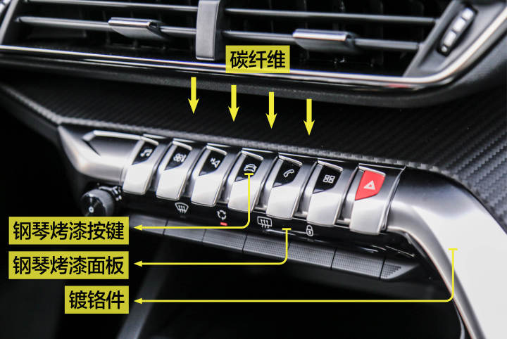 5008 途观L 柯迪亚克 昂科威 这几款车中昂科威与5008的内饰更有层次感,可以拼拼细节。途观L和柯迪亚克几乎都是平铺功能键和屏幕,最多用上几种不同材质的材料。 内饰设计有哪些值得推敲的细节特点? 在中控面板细节上,设计师用多种材料来装饰。有最基本的塑料,亮银色的镀铬和碳纤维纹路板。多种材料拼接比单一材料更容易营造层次感。 设计师口中的仿航空器开关式设计,造型和兰博基尼的按钮类似。最近在抖音上有人用它来拍视频,假装按按钮再配上弹钢琴的背景音。 |