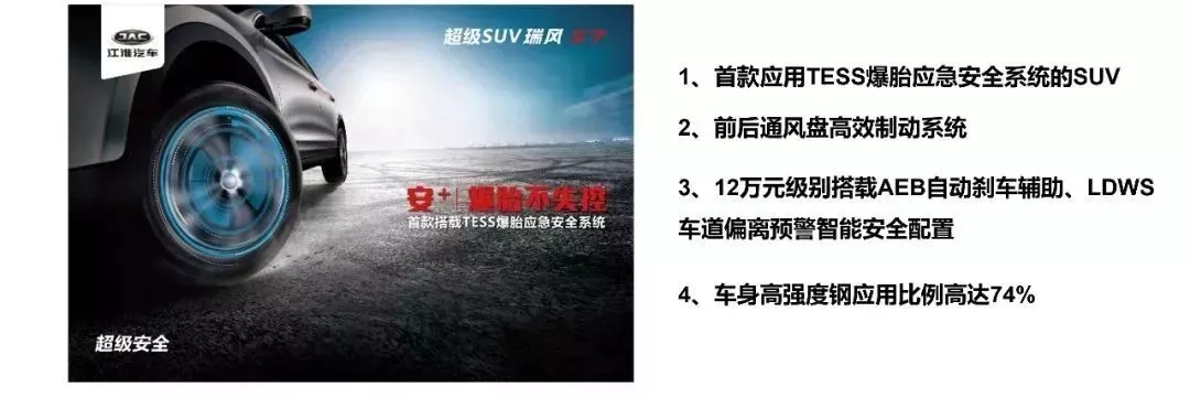 江淮瑞风 石家庄江瑞店 瑞风S7超级版爆胎体验官招募 7.22 激情上演 此时不来,更待何时!!! “爆胎不失控”瑞风S7超级版爆胎体验官招募 活动时间:7月22日 活动地点:滹沱河飞龙岛试驾基地 活动内容:高速应急安全路演、瑞风S7超级版上市、限时团购 在这里,你可以现场感受速度与激情 体验车辆的综合性能 现场好礼送不停,购车优惠享不完 到场九重礼 一重礼:诚意签到礼 (当天准时签到可以领取超值精美礼品1件份) 二重礼:厂家助阵礼 (当日订车即可获得价值1888元精美夏凉被一套) 三重礼:现场积攒礼 (现场积攒最高的10人即可获得迪卡侬运动挎包一个) 四重礼:厂家直销礼 (现场定车可享受厂家直销政策) 五重礼:订车保养礼 (现场定车客户有机会赢得终身免费保养名额) 六重礼:一元竞拍礼 (到场客户均可一元竞拍活动行车记录仪、书法老师墨宝一副) 七重礼:体验通关礼 (现场完成体验通关打卡获取纪念礼品一份) 八重礼:老客户置换礼 (老客户置换最低享3000元额外优惠,S2/S3最高可享原车价8折置换) 九重礼:幸运抽奖礼 (活动当天订车客户可享受幸运抽奖机会) 江淮“爆胎不失控”的系统,全名叫做TESS爆胎应急安全系统。TESS爆胎应急安全系统在汽车的轮毂内部增加了一个安全装置,使汽车行驶发生爆胎后的橡胶与轮毂不会分离,形成橡胶垫,避免金属轮毂直接触地打滑。 江淮汽车旗下超级SUV瑞风S7超级版即将在石家庄地区上市,指导价为10.98万元-12.98万元。作为国内安全技术品牌的首创者,江淮汽车将“安+”最新一代汽车安全系统应用在瑞风S7超级版之上,以超越同级的应急安全、智能安全和结构安全为用户建立起超级安全价值。这其中尤为值得关注的是,江淮汽车在积极倡议基础安全装置在行业内的普及引用的同时,更率先实现了TESS爆胎应急安全系统在瑞风S7上的量产搭载。超级安全之外,瑞风S7超级版在互联、空间和动力方面优势同样堪称超级,从而以四大超级优势被业内誉为“12万元SUV安全王”。 “ 四大超级优势 ” 瑞风S7超级版搭载“安+”最新一代汽车安全系统,应急安全方面,瑞风S7超级版搭载了TESS爆胎应急装置,该装置是继安全带、ABS、安全气囊后第四代汽车被动安全保护装置,能保证车辆在轮胎严重甚至完全失压后仍可安全、可控的行驶一段距离。TPMS的搭载使胎压情况实时可查。瑞风S7超级版还采用高效盘式制动系统,制动距离在行业内处于优秀水平。 瑞风S7超级版搭载了J-link智聆车联网系统,提供智能语音管家、智能生活管家、智能远程管家三项服务。通过智能语音管家,可语音开启车载导航,人车定位,在线实时地图等服务。智能生活管家提供Wi-Fi双向连接、资讯服务、道路救援等服务。智能远程管家可实现远程启动车辆、远程开启后备箱锁、远程空调控制等。超级版车型还针对所有新车用户推出终身免流量政策,每人每月可享2G流量,包括基础流量及娱乐流量。 瑞风S7超级版车身尺寸为4790/1900/1760mm,配合2750mm的轴距,提供超级宽敞的乘用空间。瑞风S7超级版后备箱容积可达1358L,加上22处的储物空间,满足一家人出行的载物需求。而同级别内超大的全景天窗,让一家人畅享车内观景的美好时光。 瑞风S7超级版搭载了1.5T+双增压发动机,最大扭矩251 N m,最大功率128Kw,媲美主流2.4L自然吸气发动机动力表现的同时,百公里油耗低至8.8升。1.5T+发动机配合6DCT湿式双离合变速箱,传动效率高达94%,兼顾迅猛动力、平顺驾驶及经济油耗。 以超级安全为基础,结合超级动力、超级空间、超级互联构建的四大核心优势,使瑞风S7超级版在同价位区间市场中具有更完善的价值体验,成为12万元区间SUV的“安全王”,为石家庄地区消费者提供高品质的安全出行体验。 “瑞风S7”超级版上市 活动时间:7月22日 活动地点:滹沱河飞龙岛试驾基地 活动内容:高速应急安全路演、瑞风S7超级版上市、限时团购 活动详询:石家庄江瑞店 (新华路车管一所正面) 0311-87675575 扫码报名 |