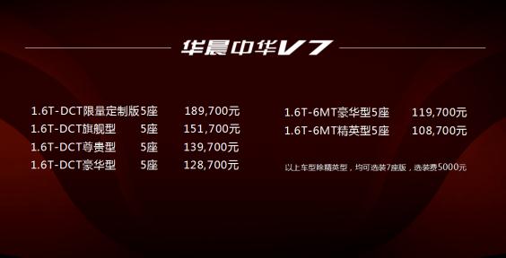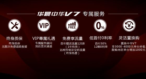 同级别最强性能猛兽腾空问世,从此自主品牌迎来自己的速度神话。 2018年7月28日,中华V7石家庄唯一授权经销商:河北华忠中华4S店举办“功夫不负有心人 华晨中华V7 石家庄上市发布会”。 引擎轰鸣的震撼声浪席卷而来,拥有竞速灵魂的华晨中华V7化身纵情赛道的性能悍将,以从容优雅的姿态,在激情澎湃的征途上展露锋芒,为 “功夫不负有心人 华晨中华V7 石家庄上市发布会”热血启幕! 本次华晨中华V7共推出包括1.6T-6MT精英型、1.6T-6MT豪华型、1.6T-DCT豪华型、1.6T-DCT尊贵型、1.6T-DCT旗舰型,以及1.6T-DCT限量定制版共六款全新车型,官方指导价10.87万元-18.97万元。以上车型除精英型外,均可选装7座版车型。 工匠精神×核心技术 成就功夫杰座 台上一分钟,台下十年功。在德国宝马十五年来的全方位大力支持下,华晨中华从五千年传统国粹文化中汲取匠心功夫力量,潜心笃志,苦练内功、上下求索,坚持正向研发、通过引进消化吸收再创新,全面掌握汽车外型设计、发动机、安全和智能四大核心技术。“功夫不负有心人”,华晨中华V7以核心技术和国粹的工匠精神为产品赋能,成就同级车最具真功夫的自主高端SUV。 由意柯那(ICONA)和华晨中华团队联合设计的华晨中华V7外观造型,整车锐利勇猛的的动感风骨,张扬的个性尽绽光芒!当车门开启的一瞬间,中华LOGO的迎宾光毯、犹如头等舱般的精致内饰跃然而来,科技感和豪华感油然而生。搭载宝马授权生产的发动机,最大功率150kW,最大扭矩280Nm,秉承豪门SUV速度基因,唤醒潜能,创造百公里加速仅8.7秒的传奇速度,在同级车型中可谓一骑绝尘。匹配30万元级豪华车才有的格特拉克7速湿式DCT变速箱,精确的转向响应、卓越的敏捷性和出色的牵引力,让所有驾驶员尽在掌握。不仅如此,华晨中华V7按照C-NACP超五星标准设计,车身采用与宝马相同供应商的宝钢板材。气囊、侧气囊和三排气帘、双级预紧限力式安全带等安全配置一应俱全。全系标配ESP车身稳定系统,同时配备车道偏离预警系统、防碰撞预警+自动紧急刹车系统、盲区监测等主动安全配置,全方位保护驾乘人员的安全,为驾乘人的安全行车保驾护航。 此外, 联合宝马及麦格纳全倾力打造的M8X模块化平台赋予了华晨中华V7强大的先天智能优势,凭借车机+手机+互联网编织的超级车联网,华晨中华V7配备的10.4寸中控大屏幕集成智能语音控制、远程控制、在线娱乐、电动尾门等功能,带来无所不在、解放双手的跨时空智能体验。 以越级品质搅局自主高端SUV市场 “守正笃实,久久为功”。国粹京剧久经岁月磨砺依然薪火相传,正犹如华晨中华数年以来执于一念,精于一技,终于练成真功夫,成就真正拥有国际品质的自主SUV最佳代言人。 华晨中华V7诞生的M8X平台拥有天生的豪门气质。该平台以德国工业4.0标准,充分应用“互联网+”的先进研发技术,汲取宝马ACES战略精髓,具备扩展衍生系列化中高端战略车型能力,将最智能的驾驶体验带入现实。承担华晨中华V7生产任务的智能工厂,集结了国内外顶尖供应商,实现了将机器人、智能设备和信息技术三者在制造业的完美融合,实现了传统工业与信息化的深度的对接,更将华晨中华的智能制造推向国际水平。并被央视《辉煌中国》作为十八大以来汽车业建设唯一杰出成就报道,同时荣膺 2017科尔尼 “中国最佳工厂”称号。 在世界一流平台和最佳工厂的双重保障下,华晨中华V7的整体品质已达到国际豪华SUV水平,并发起了对自主高端SUV市场的绝杀。在与宝马精诚合作的十五年中,华晨中华坚持“向大师学习、与巨人同行”。导入宝马的先进管理理念和管理方法全面提升品质,并于业内首创了产品经理制度和首席质量官制度,聘请了在宝马工作近40年的高尔曼先生为华晨首席质量官,建立贯穿产品质量全过程的PPQ1-10质量保障体系。华晨中华V7正是在这样的管理平台和管理理念中应运而生的全新产品,在品质管理上充分借鉴宝马质量标准体系、宝马“零缺陷”管理、宝马VPS生产增值系统等,并在实际生产过程中实现与宝马冲压件共线生产。 华晨中华以宝马品质作为强大背书,从品质标准对标国际水平,到参考宝马标准的世界一流平台,一场呼之欲出的品质革命正在华晨中华轰烈上演,这既是中国汽车品质觉醒的开始,也向世界宣告了自主高端时代的来临。 终身质保无忧用车 颠覆出行体验 华晨中华V7天生强大的产品力开启了华晨中华的品质革命。正是源于对于自身品质的绝对自信,华晨中华品牌为华晨中华V7定制专属服务套餐,革命性推出的终身质保服务、终身免费道路救援、终身免费数据流量三大震撼承诺,对标豪华品牌、直击消费痛点,为中国消费者提供行业最高标准的无忧购车、无忧用车的超值服务,颠覆出行体验! 值此华晨中华V7上市之际,华晨中华品牌还全面升级“贴心、随心、放心”的“三心服务”。基于“懂你,更关心你”的品牌服务理念,华晨中华V7拥有“更贴心,专属服务顾问”:华晨中华将为车主配备专属服务顾问,车主可以领取微信专属服务电子卡,到店可通过贵宾服务通道获得服务。此外,华晨中华还将车主定制专属服务活动;更放心,免费道路救援:除专属顾问之外,华晨中华还推出了星级救援,无论何时何地需要救援服务,只需致电客户服务热线即会第一时间获得帮助。备件“极速达”更大大提升服务效率;更随心,关爱代步车:华