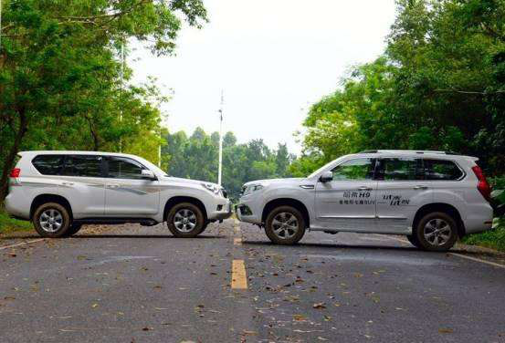 新哈弗H9与普拉多,由外向内细致品味 再说回两款硬派越野代表作。其中一款是中国品牌在硬派SUV上的扛鼎之作,一款是在中国卖得最好的外资品牌硬派SUV,那么,如果真让哈弗H9和丰田普拉多“硬碰硬”的话,到底谁会更胜一筹呢? 外观上,新哈弗H9和普拉多可谓各有千秋。后者前脸部分此次进行了升级,进气格栅、保险杠和头灯都进行了重新设计,看上去更具力量感。但H9在气势上一点儿都不逊色,新增的进气格栅镀铬装饰条,令新车看起来更具层次感,全新设计的雾灯区域也令前脸看起来更加生动。