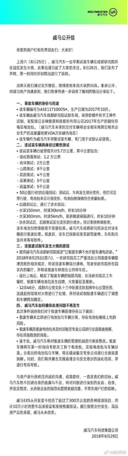 8月31日,成都车展,地道的老火锅,闷葫芦一样的展馆。 穿过车海人流,去听了一节威马的三电公开课。 关于交付状态的电池 这两天关于威马电池真是吵的沸沸扬扬,主要还是源自25日于成都研究院自燃的威马EX5所致。 先来回忆一下27日的追加公开信。