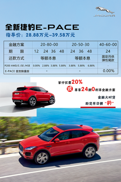 9月2日,河北惠通陆华捷豹路虎4S中心在万达广场圆满举办了“全新捷豹E-PACE上市会”。在一场“驭·见E-PACE”的精彩演绎中,捷豹PACE家族的最新成员——新英伦豪华轿跑SUV全新捷豹E-PACE闪耀上市。 全新捷豹E-PACE展现了捷豹品牌的美学设计与赛道基因,并以时尚个性特质为捷豹的英伦风范注入全新活力。全新捷豹E-PACE共推出六款车型,厂商建议零售价为人民币28.88万元至39.58万元。 全新捷豹E-PACE上市发布会价格 全新捷豹E-PACE 充分彰显捷豹PACE系列新英伦豪华轿跑SUV‘三位一体’的特质,集轿车的舒适性和豪华性、跑车的运动性、SUV的空间性和通过性这五项全能优势于一身,专为充满活力、追求自由、享受生活并渴望与众不同的新一代捷豹车主量身打造。” 定位紧凑SUV的捷豹E-PACE虽是家族最小的PACE车型,但其依然具有着那种与生俱来的运动特征和豪华品质,英伦气息十足。外观上,E-PACE在设计上融合了赛道元素和家族跑车F-Type的元素,大面积的网状进气格栅、悬浮车标以及“豹锋眼”大灯赋予了这头“小豹子”个性的灵魂。 全新捷豹E-PACE采用诸多源于赛道传承及F-TYPE跑车的设计元素,以前沿仿生学设计理念打造颇具运动韵律的溜背造型与车身线条,引领设计新风向。座舱采用极具现代感的跑车设计,中控仪表盘上方融合独特的赛道弯道曲线风格,营造前卫的豪华氛围。 主持人致开场词 为了更好地满足新一代捷豹车主对豪华、运动的理解和期待,全新捷豹E-PACE搭载了一系列卓越的性能科技。在加装自适应动态模式后,捷豹“驾控管家”可调动态模式可对车辆动态性能进行个性化设置,包括油门灵敏度、换挡速度、转向比、悬架减震器硬度等均可单独设定,驾驶模式多达16种。同时,全新捷豹E-PACE采用Ingenium 2.0升涡轮增压发动机和9速自动变速器,并搭载运动化调校底盘及智能四驱系统等配置,以豪华轿跑SUV的非凡驾驭定义个性驾趣。 新车揭幕 经过充满英伦智慧的精心设计,全新捷豹E-PACE提供领先的车内储物空间和便利的用车体验。后排座椅放倒后,装载容积可扩至1,141升,能够容纳至少6个20寸标准登机箱。中央储物格容积达到8.5升,手套箱容积达10升。 品牌讲师为来宾介绍新车亮点 首位全新捷豹E-PACE车主交车仪式 捷豹E-PACE作为首次加入捷豹家族的新成员,更是暖心标配了充满英式幽默的小心机。在车窗以及迎宾灯中,首次出现了小豹子跟随母豹子的图案。 作为全新上市的捷豹首款国产SUV,捷豹E-PACE最低首付仅需20%,或可选择首付40%,尊享24期0利率的金融方案。 发现更多捷豹E-PACE魅力,欢迎莅临和河北惠通陆华。 河北首家捷豹路虎4S中心 河北惠通陆华 贵宾电话:0311-85610600 公司地址:石家庄北二环东路86号汽贸园外围东南角 |