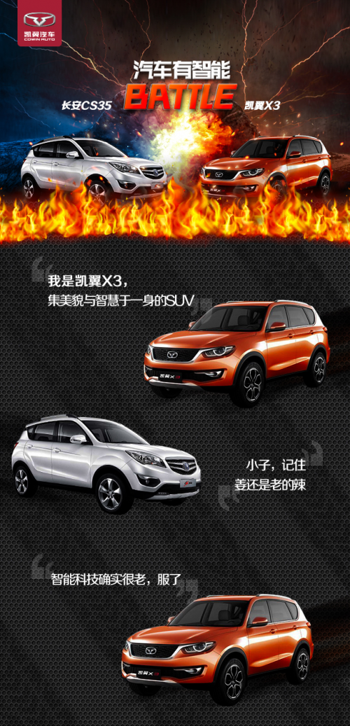 其实现在年轻人的口味还是具有很高辨识度的,他们喜爱潮流,追逐个性,当然对于科技产品的消费也是极富有战斗力,尤其在车辆的选择上也更钟爱富有科技感的SUV。那么今天就以长安CS35与2018款凯翼X3进行一场智能battle,看看究竟什么才是年轻人的心头好。 互联有智能,玩转年轻人潮流生活 如果说发动机是一款车的“心脏”,那么智能互联则可以说是一台车的“大脑”,尤其对于现在的年轻人来说,如果一款车没有良好的互联真的是要“OUT”了。 看人先看脸,看车也一样,长安CS35的7寸屏幕在同类产品中算是“中规中矩”,但是随着现在各家车企都在追求超大屏的今天,这样的做法显然是不太够的。就跟家里的电视一样,谁还不更爱个大屏幕呢?那看起来的效果杠杠的。这样看来,凯翼X3的10.1寸屏幕就显得更为符合潮流了,而且3G/WIFI双收双发的设计显然也要比长安CS35的单纯WIFI接收要方便实用的多,尤其在未来网络资费越来越实在的情况下,显然双收双发要更受年轻人的欢迎。