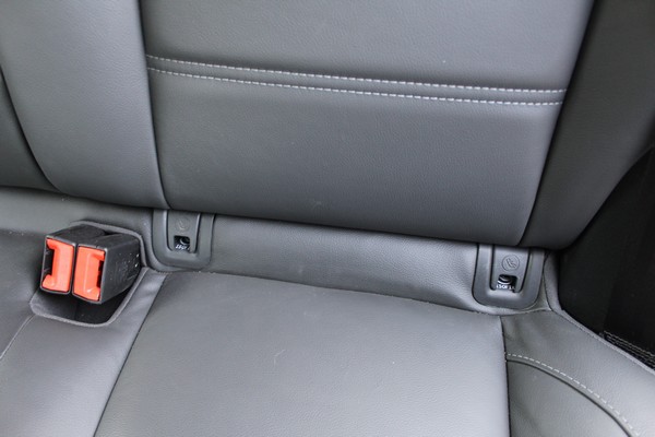 后排乘坐体验舒适,中间凸起较高,后排中间坐人的话体验不是很舒服。后排带有杯架,储物空间丰富。 第二排带有出风口及储物盒,没有配备现在主流的USB口,这点比较遗憾。 后排座椅有一个可以连通后备箱的窗口,方便拿取物品。 后排两侧座椅均带有ISOfix儿童座椅接口。 |