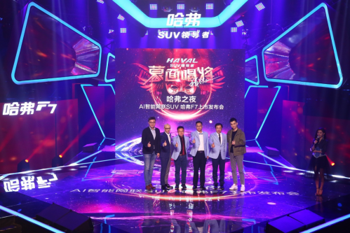 (“AI智能网联”SUV哈弗F7上市发布会) 11月6日,哈弗品牌摘掉了“赞助商“的面具,在大热综艺IP《蒙面唱将猜猜猜》的录制现场——上海碳素片场,正式以”制作人“的身份出道。通过一场融汇高管猜评团、跨界唱将蒙面演绎,以及“AI智能侠”哈弗F7实力助猜的《蒙面唱将猜猜猜》番外篇完美实现霸屏。当晚,哈弗F系与代表着新个性、新消费和新创造的“Hi Fans”一起,见证了哈弗F7全球揭面的高光时刻。
