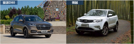 在SUV细分市场中,自主品牌车型占有率要远高于合资品牌,这对我们来说是非常欣慰的,自主SUV有如此市场表现与其良好的品质密不可分。今天,我们就找来两款SUV进行对比:骏派D80和吉利博越,近期想入手SUV的朋友可以参考一下。