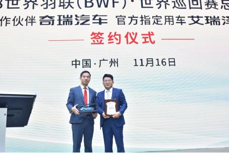 艾瑞泽GX搭载的“雄狮智云”智能网联系统 面对未来智能化时代,作为自主品牌的“技术代表”,积极布局智能化领域,持续洞察智能化技术未来发展趋势,深入研发智能化技术,相信这一切努力终将为用户带来便捷、人性和丰富的用车新体验。 跨界结合,推进品牌年轻化 广州是一个充满美丽、丰富多彩的城市,12月的广州会更加精彩,世界最高水准的“2018世界羽联·世界巡回赛总决赛”第一次落户广州。 在此次车展上,奇瑞汽车正式与“2018世界羽联·世界巡回赛总决赛”赛事组委会签约,成为“2018世界羽联·世界巡回赛总决赛”的官方合作伙伴,同时旗下艾瑞泽GX将成为赛事官方指定用车。