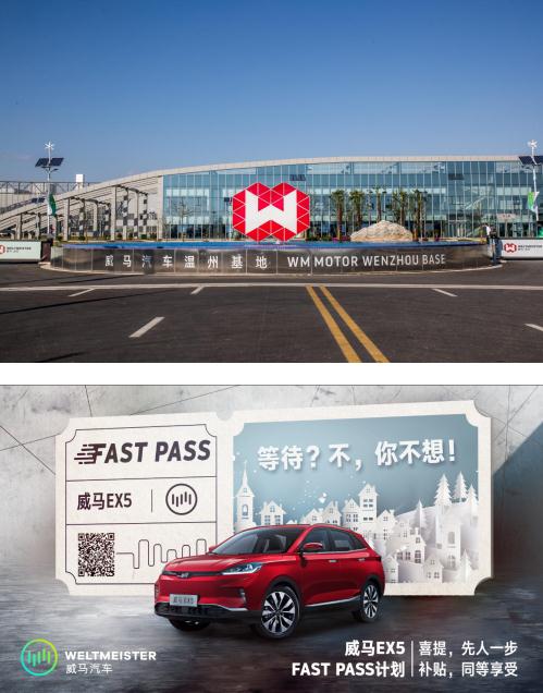 造用户“用得起、用得爽”的智能电动车从来不只是一句口号,威马汽车特别针对希望在春节前提车的用户推出Fast Pass计划: 威马汽车承诺:在18个活动城市* 购买威马EX5 300和EX5 400的用户,只需在2018年12月11日前(含当天) 于电商平台完成大定支付,并在2018年12月26日前(含当天)到各地智行合伙人处签署购车合同并付清全款,均可享受2018年国家及各地政策补贴后的价格,以及威马汽车已公布的666服务权益。同时上述用户将可以在2019年1月31日前提车。 2018年是威马汽车的交付元年,自9月第一批量产车的交付后,威马EX5在媒体和用户端也得到了广泛认可和好评。截至11月上旬,威马新能源汽车智能产业园总装下线产量近2000辆,随着产能和订单的持续爬升,11月底的日峰值产量近200辆。 威马汽车自主正向研发、自建工厂,并整合全球资源,构成了以用户为中心的新智造+新零售+新服务的体系。随着明年威马EX5 Pro及威马EX6等新产品的推出,威马汽车还将为用户带来更高效和更高品质的用车体验。 活动城市为:北京、天津、廊坊、济南、青岛、上海、南京、苏州、杭州、温州、成都、郑州、武汉、西安、深圳、广州、合肥、台州。 威马汽车官方网址:www.wm-motor.com 同时欢迎关注威马汽车官方微信微博,了解更多企业信息并与我们互动。 威马汽车官方微信二维码(ID:WMMotor) 威马汽车官方微博二维码@威马汽车 |