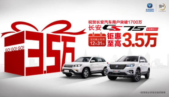 为祝贺长安汽车用户突破1700万,长安CS75年终限时大促,至高2万元现金优惠、1.1万补贴让利,更有送险送保养,钜惠最高3.5万元!高品质、优惠价,欢迎广大朋友进店选购! 2018年12月8日至12月31日,购买长安CS75全系车型,至高享受终端2.6万元现金优惠,7000元金融补贴和5000元置换补贴,免1年交强险并送6年或12次保养,年终限时大促,机会难得! 近年来,国内自主品牌的发展速度有目共睹,作为长安汽车紧凑型SUV市场重磅车型,长安CS75自上市以来便赚足眼球,凭借前卫时尚的外观造型和出众的性能获得数十万消费者肯定。今年4月推出的长安新CS75,立足“豪华驾舱智慧SUV”,更进一步针对外观、内饰、动力及智能科技全面升级。新CS75搭载的全新蓝鲸280T直喷增压发动机获得“中国心”2018年度十佳发动机称号,实力不彰自显。除此之外,在I-VISTA中国智能汽车指数首批测评上,长安新CS75更以其出众的综合智能表现征服了各方测评,成为唯一荣膺四项++++最高评价,实力铸就荣耀! 长安CS75尚酷版造型硬朗,采用印有长安标识的单横幅镀铬进气格栅,极具辨识度。车身尺寸4650*1850*1695mm,轴距2700mm。全新升级内饰,搭载7寸液晶仪表、8寸大屏和In Call智能车载互联系统,可实现全景泊车、车身控制个性化设置等。动力方面,长安CS75尚酷版搭载1.5T GDI涡轮增压发动机。 长安新CS75外观大体延续现款车型,前脸采用大尺寸进气格栅,LED大灯组经镀铬材质修饰,造型更为时尚精致。车身尺寸为4650*1850*1705mm,轴距2700mm。内饰采用偏扁平式横向设计,10.25寸悬浮式中控屏与全液晶仪表盘,科技感十足。长安新CS75搭载In Call智能车载系统,可实现语音控制、防盗追踪、车载热点和导航等功能,配备360°全景影像和自动泊车功能。动力方面,长安新CS75采用全新蓝鲸280T直喷增压发动机,动力领先。 长安汽车作为国内自主品牌排头兵,凭借出色的制车工艺和先进的服务理念广受用户好评。长安汽车不仅是第一家国内品牌汽车产销累计突破1000万辆的车企,更连续10年实现中国品牌汽车销量第一。在SUV领域,长安汽车通过汽车智能化打造和技术突破,使长安CS75在中国智能汽车指数排行荣获第一的佳绩。 长安汽车用户现已突破1700万大关,庞大用户量的背后,是对长安汽车品质与服务的认可。长安CS75全系限时大促,最高钜惠3.5万!让更多汽车爱好者以实惠的价格享受到更优质的产品服务和前沿科技体验!购车最省就在此时!心动不如行动,有购车计划的朋友可千万不要错过! |