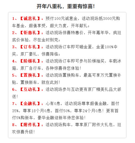 买车不必找关系!买车不必跑断腿! 2019年1月19日 14:30 石家庄金时邦达别克开年嘉年华 厂家直销价,八重惊喜礼! 狂欢秒杀,礼遇全城! 国际知名高档汽车品牌,秉承"心静 思远 志行千里"的理念,整合全球领先科技资源与服务优势,带来高品质驾乘体验,石家庄金时邦达别克4S店以其强大实力立足于石家庄汽车市场,励志于带给客户最舒适,最实惠的购车体验,本次活动金时邦达别克店联合厂家,以最低价格礼遇全城,回馈新老客户! (2018年活动图片) 活动现场超低价格的同时,我们在礼品方面也给出了极大的诚意!活动现场八重豪礼,重重惊喜!为您开年带来最惊喜的购车经历,让您尊享全年最优质的购车服务及增值服务,下方列出豪礼!一切尽在不言中! 另一方面,别克汽车也以其华丽的外观得到了客户们极大的认可!厂商对于车型外观的把控已臻化境!英朗,威朗等车型深受年轻人喜爱;而GL8更是您商务用车的不二选择;家庭用车,还有比GL6更合适的吗?别克车型以其精准的市场细分赢得了基本覆盖全年龄段车主的信任及喜爱。 (2018年活动照片) 超低底价,尽在金时!石家庄金时邦达别克4S店开年嘉年华,将为您带来超低的价格,超好的服务,超棒的体验!本次活动厂家联合,新春前最后一次大型团购,错过本次,再等一年! 石家庄金时邦达别克4S店 销售热线:0311-89292626 地址:石家庄市建华大街与丰收路交叉口东北角(国际汽车贸易园区西门内) |