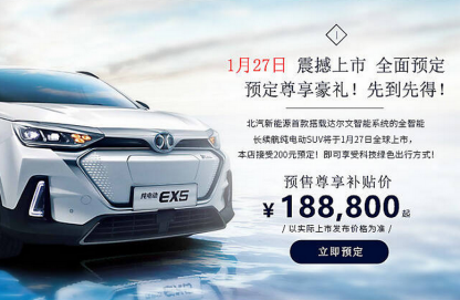 2019年1月15日,北汽新能源达尔文系统孕育诞生的“全智能长续航纯电SUV”EX5开启预售,预售价18.88万元起。新车最大续航里程达520km,彻底解决用户里程焦虑。此外购EX5还可获得2年、48G车机免费流量(2G/每月)。消费者可登陆北汽新能源汽车京东旗舰店进行订购。EX5上市后将填补北汽新能源在A级纯电SUV市场的产品空白,进一步彰显北汽新能源“纯电动汽车领航者”的行业地位。 全智能 EX5以五大智能亮点,充分诠释整车人工智能。 其一,智能电控。EX5搭载北汽新能源第三代先进电控管理技术——EMD3.0智能电控系统,体积更小、重量更轻、布局更安全合理。全面监测整车260个部件数据,智能管理电池,使续航更长;智能优化电机,使动力更强;智能调校整车,使操控更精准,行驶更安全。 其二,智能飞屏。即12.3寸全高清靓彩数字仪表盘+9寸高清悬浮娱乐中控大屏,具备双屏互动功能,可将中控屏上的多媒体信息、导航信息和电话信息导入仪表屏,让驾驶者视线始终向前,不必分心,带来更人性、更清晰的视觉体验。 其三,智能语音。搭载百度DuerOS智能语音交互系统,真正实现了人与车机的深度对话交流,并能通过语音控制导航、空调、音乐、搜索等功能,让出行更轻松;独创i-Voice声音品牌,仪式感座舱氛围一路相随。 其四,智能驾驶。配备10项智能驾驶辅助系统,包括自适应巡航、车道偏离预警、行人前碰撞预警、车辆前碰撞预警、自动紧急制动等,配合EMD 3.0智能电控技术,能精确监控行车安全并实时进行路径纠偏,使用户驾乘更安心、更放心、更舒心。 其五,智能网联。EX5能通过网联,智能融入各种生活场景,让您在车上按需查询播报海量网络信息、帮您筛查预定行程、帮您自动结算停车费等等;更重要的是,EX5上的各种软件系统,包括EMD 3.0技术,可通过带独立网关的OTA技术定期升级更新,保持车辆性能更优、体验更好、安全更佳。 长续航 强大的EMD3.0智能电控系统,融入 One Pedal单踏板能量回收功能,回收效率高达21%以上,从而使EX5的等速续航最高可达520km,综合工况续航415km。以北京天安门为中心,可覆盖整个北京以及山西、山东、内蒙等多个地点的单程出行,彻底解决用户里程焦虑。 外放电 值得一提的是EX5还拥有领先的车对车充电功能(V2V),可为车充电;以及车载外供电功能(V2L),可为各类电器供电,为用户带来更加多彩的用车体验。 目前,EX5预售已正式开启,用户可登陆北汽新能源汽车京东旗舰店( http://mall.jd.com/index-891202.html)进行订购,也可前往北汽新能源全国经销店进行咨询预订。 基于达尔文系统打造的全新紧凑型SUV EX5在智能化方面的配置已经走在了自主品牌甚至是合资品牌前列,为消费者提供一个更加舒适、便捷的出行选择,520km超同级别车型的续航里程更让用户出行无忧,这样一款各项指标优异的产品值得消费者期待。 |