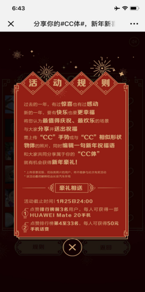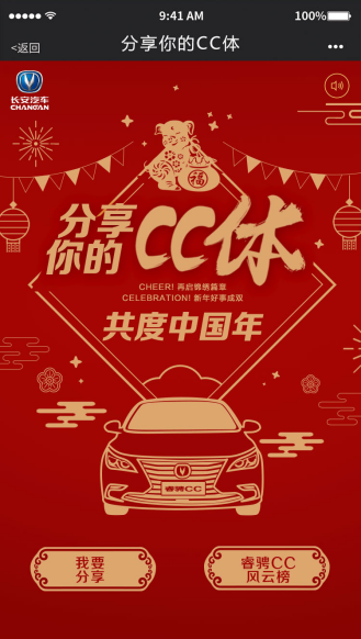 年关将至,越来越多的人关心抢票、抢红包、回家、春节、聚会的情况,并为之筹谋策划。睿骋CC作为一名集优雅与智慧并存的绅士紧跟大众脚步,以自身命名CC为基点并结合英文单词“Celebration”、“Cheer”庆祝、欢呼喝彩释义,打造“#CC体#”专属热词话题,给广大消费者打造一个分享快乐、精彩瞬间、团聚相见的庆祝氛围的场景平台,邀大家一起解锁CC体 共度中国年,赢取精美年度大奖,让举起酒杯的手、拍照记录精彩瞬间的手,一切呈现“CC”体、充满庆祝欢乐的姿势、场景有所安放,迎接一个新的开始。 为此,睿骋CC以实际行动来展现自己,1月17号在长安官方平台发起#解锁CC体 共度中国年#话题活动,活动H5以中国民俗文化剪纸为加载页面,体现浓浓的中国春节风格,并设置点赞排行榜页面,邀请并鼓励用户上传庆祝、欢呼、欢乐的场景图片,讲述其中的故事并可以分享给好友进行拉票,冲进排行榜前三名赢取国产华为手机一部,页面设置和奖品设置上长安睿骋CC可算是做足了功夫,把一场看似惯例营销的活动做得有声有色,在春节期间增进了一份温暖的气息备受消费者喜爱,并体现出国产车长安睿骋CC领跑品牌的形象,赚足了群众眼球。 难道作为一场睿骋CC专属解锁CC体共度中国年活动就这些准备吗?不是的,这远远不够,除此之外睿骋CC 还设置了CC 体的释义海报与之相呼应,知名抖音达人演绎CC体视频,自媒体以自己的视角讲述观点,共同倡导CC体鼓励消费者参加赢取豪华大奖。此次CC体活动期从1月17号-1月25号足够的参与时间,前三名将赢取华为Mate20手机大奖,第4名-33名将赢取50元话费,超大福利有奖组合,争取吸引更多的消费者参与并有机会获得大奖。 如此活动可谓是利己利大众,不仅对自己品牌的知名度有所提升,还以创意、趣味、大众喜闻乐见的形式引发用户共鸣,获得消费者大众的好感,如此实力整体影响力不提升都难。 睿骋CC自上市之日起,便以自身实力博得在公众与媒体眼中的高出镜率:上半年通过卓越设计获得有设计界的“奥斯卡”之称的德国红点设计大奖产品设计奖;下半年更在18版C-NCAP新标准以“头名撞”的身份率先拿下五星好成绩,不论是融汇东方的哲学理念,极流家族语言的外观设计,还是高达56%的车身高强度钢应用的产品力都可圈可点,在中国汽车品牌爆发的关键时期,睿骋CC无疑是中国制造实力的代表车型之一,在未来长安将会有更多的优秀新车型如雨后春笋般登台亮相,相信“开中国车 过中国年”,将成为越来越多消费者的第一选择。 结语:作为大智慧、高颜值、安全感爆棚的睿骋CC,一年中斩获中国设计红点奖、完成整车碰撞测试荣获C-NCAP新标五星头名撞成绩,安全体验营12站实地智能安全展示等多项活动,可谓拥有锦绣的的历程回顾,给自己交了一份满意的答卷,恰逢春节将至更是用灵敏的嗅觉闻新的契机——意识到过好中国年少不了中国文化习俗,但是以新姿势过好中国年是多数年轻消费者的追求,不仅体现年味更增添了真正分享快乐、高兴的味道,更体现出睿骋CC行业角度前瞻的眼光。 恰逢其时争分多秒,不要错过,识别图中二维码赶快去参加活动赢取春节大奖吧! |