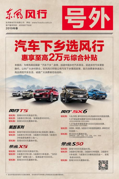 阔别十年,国家再次启动新一轮“下乡政策”, 10年前“汽车下乡”最大受益者是1.3升及以下排量的微型客车。这一次的政策有调整,此次下乡政策指出,有条件的地方,可对农村居民报废三轮汽车,购买 3.5 吨及以下货车或者 1.6 升及以下排量乘用车,给予适当补贴,这样的补贴政策充分反映了“汽车下乡”政策的与时俱进,毕竟,在这个消费升级的大环境下,排量太小的车型已不能满足乡镇年轻人的消费需求。 小编认为,此次汽车下乡政策,7座SUV将会是最大的受益者,SUV的高底盘在乡镇驾驶途中会更有优势,乡镇消费者家庭成员数普遍高于城市消费者,因此7座会是最好的选择。恰逢汽车下乡政策,对消费者来说购车正当时,不仅风行SX6拥有万元钜惠,风行全系惠享至高两万元综合补贴。有购车需求的消费者千万别错过这次机会。 小编最近看中的是东风风行旗下的风行SX6,这款大空间全面实用的七座SUV自上市时,便俘获了一众消费者的芳心。风行SX6外观简约大气,进气格栅采用多横幅进行装饰,硬气十足。前大灯的造型菱角分明,并采用透镜的设计,灵动可人,车尾采用双色尾灯组合,色彩鲜明,排气口与保险杠融为一体,搭配大面积银色护板,使得整车造型浑然一体。内饰部分,车内采用简约时尚的设计为驾乘者带来愉悦感,真皮多功能方向盘让驾驶者掌控全场,8寸大屏+倒车雷达影像让你停车无忧,中控台采用当下时尚的银色装饰件,彰显豪华感;双炮筒的仪表,凸显动感。还有车窗防夹+一键升降,不用担心孩子手被夹。 空间方面,风行SX6更加出色和体贴,2750mm的轴距为驾乘者提供更加宽裕的空间,第二排座椅支持前后移动,既保证了三排的乘坐舒适度同时又能保证二排乘客的腿部空间。风行SX6采用2+2+3座椅布局,二排座椅间的充裕通道,既能保证三排乘客进出,又能保证采光与通风,大大的提高了乘坐时光的舒适性,行李箱空间最大能拓展至2400L,为消费者带来了更大的储物空间。 动力上,风行SX6 1.6L车型,百公里油耗仅6.6L,比普通轿车还省油,这对乡县消费者来说无疑是很好的选择,消费者还可以更具自身需求选择动力强进的2.0L车型,风行SX6绝对可以满足消费者的不同需求。风行SX6采用专业SUV调校底盘,减弱乡镇道路不平对车体的影响,让消费者更舒适,同时也能减少颠簸对汽车零件造成的损耗。可谓是用心至极。 此次东风风行率先响应国家政策,加速中国乡村汽车普及,促进乡村汽车更新换代,让利广大乡村消群众,带来了下乡惠民政策,福利多多,助力消费者快速进入高品质的汽车生活,东风风行用最大诚意回馈乡镇消费者,现在有购车需求的消费者,不要错过风行的这款经典7座SUV-风行SX6,赶快下手吧。 |