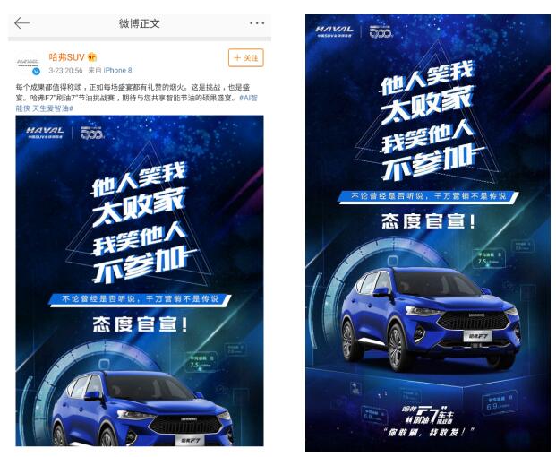 日前,一场重点针对哈弗F7车主发起的“刷油7”节油挑战赛,正在国内进入白热化阶段。哈弗F7车主,只要带着自己显示数字“7.X”的油表照片或视频(油表显示平均油耗值在8.0升以下,行驶里程需不小于500公里),即可到当地购车哈弗4s店兑换奖京东e卡、保养券、油卡等超值大礼,人均礼品价值高达300元,活动将截止至3月31日。 这场节油挑战赛开赛一周以来,已经吸引了大量哈弗F7车主“蜂拥“至各地的4S活动门店领取奖品。有很多热心车主拍下了现场视频和照片,并在网上发文提出了一些疑问,典型的表述如:“算不知道,一算吓一跳,哈弗F7已经卖了4万多辆。这辆车因为智能节油功能出色,轻松就能实现7点几的油耗显示;要是平均每人奖励300块,随随便便就要给出1300万的节油活动奖金了?哈弗不会因为符合领奖资格者太多而提前终止活动吧?” 在注意到车主和网友们此番言论后,哈弗SUV通过官方微博发文称:这是挑战,也是盛宴。哈弗F7“刷油7”节油挑战赛,期待与您共享智能节油的硕果盛宴。简单的文字之下,一张海报“霸气官宣“,表达了官方全力支持此项节油赛的态度:“他人笑我太败家,我笑他人不参加。你敢刷,我敢发!” 这也意味着,哈弗SUV愿意付出千万元级别的代价,邀请尽可能多的哈弗F7车主参与这项活动,并如数兑现奖励。 这样的官宣姿态,源于对哈弗F7全方位的信心。自去年11月上市以来,哈弗F7已经连续3个月销量破万,用户数量接近5万,究其原因,不仅有精准的产品定位——面向年轻族群的设计原则和13~16万的合理定价,更在于出众的产品力——超高颜值,智能科技,超越同级的安全性。这一轮”刷油7“活动的举办,则着重体现出哈弗F7在智能化科技加持下的节油能力。 为了实现节油,哈弗F7搭载了ACC自适应巡航、ECO驾驶模式,自动启停等多项智能省油技术,以及智能导航系统。其中,ACC自适应巡航能让车辆保持匀速,让司机不用踩油门踏板就可以让车辆平顺行驶,减少不必要的车速变化,从而节省了油耗。 智能启停功能,能够实现有驾驶需求时自动快速起动发动机的需求,也能减少了怠速情况下的油耗浪费。智能导航系统能够辅助驾驶者躲避拥堵路段,减少拥堵所带来的多余油耗,实现“智慧节油“。 哈弗F7用户群日益壮大,其节油能力也收获了越来越多的认可。随着本次“刷油7”节油挑战赛的成功举办,哈弗F7有望在高颜值、智能化、安全性等既有口碑之外,再添“低油耗“的美名,并为SUV的油耗优化树立新的标杆。面对官方鼎立支持车主”刷油7“的态度,未参与活动的哈弗F7车主们还需要犹豫吗?只要一张照片,秀出您的油耗,做个快乐“刷7人”吧! |