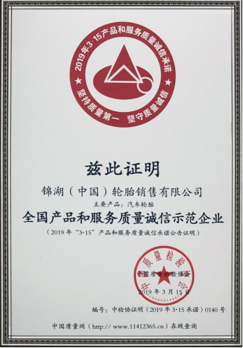近日,由中国质量检验协会(以下简称质检协会)组织开展了以“坚持质量第一,坚守质量诚信;抓好质量提升,建设质量强国”为主的“产品和服务质量诚信承诺”主题活动,并制定了“全国轮胎行业质量领先企业”“全国产品和服务质量诚信示范企业”及“全国质量检验稳定合格产品”三项榜单,其中“全国轮胎行业质量领先企业”“全国质量检验稳定合格产品”是由2016年1月~2019年1月期间的质检调查情况综合评定的,入选企业在这三年间均未出现产品质量上的问题,且在消费者群体中具有良好的口碑。据悉,经过专业评委的严格审查和层层筛选,锦湖轮胎凭借优质的产品质量和诚信的服务承诺,获得以上三项荣誉称号。