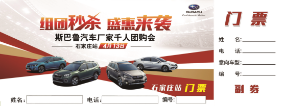 4月13日 2小时巅峰团购会 对于要买车的你来说绝对值得关注 斯巴鲁厂家千人团购会 石家庄站即将华丽登场 报名热线:0311-87753876 现团购门票火爆预定中 厂家政策支持,限量50张 数量有限 售完为止 仅凭门票就可参加现场循环抽奖! 领取进店礼 互动礼 享受当天价政策! 当日订车更可享受十重大礼!!! 石家庄斯巴鲁诚邀您来参加 4月13日 石家庄斯巴鲁4S店 我等你!! 购车专线:0311-87753876 售后前台:0311-87718515/66570799 续保热线:13933138298 保养预约:0311-87702249 客服电话:0311-87702249 24小时救援电话:18931551513 地址:石家庄市北二环东路86号 |