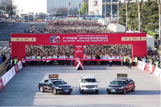 2019年4月14日,“广汽传祺·2019北京国际长跑节北京半程马拉松”在天安门广场活力开跑。广汽传祺作为赛事独家冠名赞助商,携全新传祺GS5、传祺GS8、传祺GA8等19台品质座驾,为赛事提供计时领航、媒体采访、嘉宾接待等保障服务。 广汽乘用车副总经理闫建明先生为比赛鸣枪发令。2万名跑者迎着春日的朝阳奔向鸟巢,将21.0975公里的赛道,变成一场燃情嘉年华。