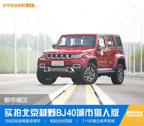 要点速读 1.北京越野BJ40城市猎人版共推出2款车型,主要针对向往越野生活的都市用户打造。 2 2.城市猎人版在外观设计上并没有太大变化,在舒适性配置和科技配置上得到提升。如环绕音响、语音控制、电动座椅和座椅三挡加热等功能,更有针对性的满足都市用户需求。 3 3.动力和悬挂系统依然保持了硬派越野的风格,并且配备电控分时四驱系统,提供更高的通过性。