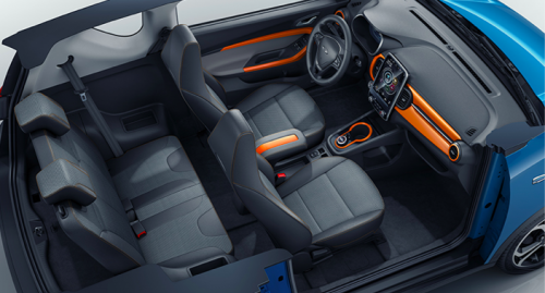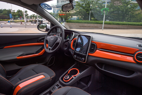 内饰方面,2019款小蚂蚁的内饰采用橙黑、蓝黑的色系搭配,中控台采用的软触材质包覆工艺,让人在视觉和触觉上,都感觉到非常的舒适。10寸的超大中控台液晶大屏、多功能三幅式方向盘、一目了然的液晶显示屏,以及舒适的运动座椅,也都可圈可点。2019款小蚂蚁的制动升级为电子手刹,也让新车的前排空间显得更加充裕,为驾乘者提供了很大的方便,新增的中央扶手,不仅握感舒适,而且还可以在一定程度上缓解驾驶者的驾驶疲劳,在同车型中算是一个非常不错的亮点。