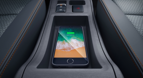 除此之外,新车还专为驾乘人员增加了特有的手机无线充电功能,在传统的中央扶手箱位置专门设计的手机无线充电面板,可支持iQ协议无线充电功能的手机随时充电,可以说是非常的实用,考虑的相当人性周到。