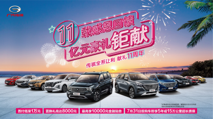据悉,在7月11周年庆典之际,广汽传祺也面向全国消费者,推出“11载感恩回馈,亿元豪礼钜献”全系让利活动。其中,购买传祺GS8,在享受“一证申请,2年0息”便捷钜惠的同时,还能获得最高8000元的置换补贴,以及5年或15万公里超长整车质保(仅限国五车型)。喜欢传祺GS8的朋友,赶快趁钜惠之际入手这款旗舰级SUV,与它一起霸气守望三江源“中华水塔”。 |
