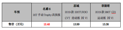 这个7月注定是速度与激情的代名词,一直备受瞩目的名爵6 20T手动Trophy高铁版于7月23日正式上市,官方指导价12.98万元,减去高铁版车型50%的购置税补贴,实际支付价仅需12.48万元,用户还可同步享受3年0利率优惠金融政策、基础服务/基础流量终身免费福利,以及高铁版限量专属名爵徽标。此外,8月底前购车的用户还能以999元享万元Trophy服务礼包,狂引心动! 此次上市的名爵6 20T手动Trophy高铁版满足史上最严排放标准“国六B”,配合6MT手动变速箱,打造“6秒破百”极速实力,配合同级唯一的原厂改装熏黑套件、可开关式运动排气声浪、BOSE音响等多项越级配置,让超强战斗气息与极致驾控乐趣合二为一。同时,名爵6 20T手动Trophy高铁版配备“互联智行”系统、360°全景影像系统、“过弯神器”XDS、LED大灯、无钥匙进入、PM2.5空气过滤、Auto Hold自动驻车等数十项同级独有配置,在运动之上提升舒适享受,实力诠释“史上最强手动挡”的爵佳气势! 依托“当红主爵”名爵6等一系列高性能、强操控、爽体验的车型,名爵在竞争激烈的运动汽车市场表现相当亮眼。今年上半年,名爵累计总销量突破12万辆,达126895辆,同比增长3.8%。在刚过去的6月,名爵品牌零售批售均超2万辆,全系热销2.5万辆,同比增长55%,环比增长13%,在车市“冷淡”的当下尽显强悍战斗力。 那么,在年轻人特别关注的运动轿车领域,名爵6 20T手动Trophy高铁版(以下简称名爵6高铁版)到底胜算几何?我们把它和目前市场上关注度较高的思域 2019款 220TURBO CVT劲动版 国VI(厂商指导价13.99万,以下简称思域),菲斯塔 2019款280T GDi运动版 国VI(厂商指导价13.38万,以下简称菲斯塔)进行对比,看看谁才是最具实力的运动轿车。 外观:更多人喜欢的溜背设计,名爵6高铁版“最吸睛” 既然是瞄准年轻人,大多数运动轿车的外观造型都很时尚,不过,如果为了“夺眼球”而过分“个性”,反而会流失一批消费者。 在这方面,名爵6高铁版以三款车中“最好看的溜背设计”先胜一筹,它采用感性力设计语言,从家族式星辉骑盾格栅前脸、豹跃肩线到Fastback溜背造型一气呵成,演绎来自英国的纯正轿跑身姿。再配合三款车中唯一搭载的原厂改装熏黑运动套件、LED大灯、自动大灯、转向辅助灯,以及18寸运动轮毂,加上2715mm超长轴距,名爵6高铁版的外观足够抢眼。 名爵6 20T手动Trophy高铁版 内饰及配置:360°全景影像、真皮方向盘、PM2.5空气过滤,名爵6高铁版有“最爽体验” 一款真正出色的运动轿跑,不仅外表拉风,“内在”也必须让人满意。 名爵6高铁版以三款车中最多的豪华体验、舒适配置,摆脱手动“丐版”的既定印象大气“加料”。在车内,名爵6高铁版采用了常见于豪车的软材质包覆和缝线处理,还提供运动色彩的双色内饰布局,配以真皮方向盘,豪华感十足。而且其科技配置也相当大手笔,无钥匙进入、一键启动、电子手刹、Auto Hold自动驻车等诸多领先同级的配置,也让整车质感进一步提升。 值得一提的是,名爵6高铁版还是三款车中唯一壕配360°全景影像系统、PM2.5空气净化系统、定速巡航、腰部支撑、中央通道储物箱制冷/制热等配置功能的车型,让用户轻松应对倒车入库、高速路行驶等各种使用场景,同时提升车内舒适享受,整体装备水准可谓同级最强,真正实现“史上最强手动挡”。 名爵6 20T手动Trophy高铁版 乘坐空间及工艺品质:后排空间、精细做工领先同级,名爵6高铁版有“最高品质” 很多人对运动轿车的空间大小总是无力吐槽,为“运动”降“舒适”,其实这是汽车厂商是否用心的最直观体现。 很明显,名爵6高铁版是三款车中空间表现最出色的一款,不论是前排空间、还是后排体验,都满足家人乘坐的舒适需求,让运动轿跑不只是“单人运动”,更成为“多人享受”。而菲斯塔狭小的后排空间已经变成用户抱怨的重灾区,“菲斯塔空间之大,两个小孩坐不下”成为经典吐槽。其实,车辆后排空间已经成为购车使用一段时间后“后悔值”里排行前3的因素,实在需要慎重考量。 除了在乘坐空间上让人满意,名爵6高铁版还在细节上体现高品质。在与思域进行的一组细节对比上,无论是在车身缝隙、车顶焊接等考验工艺水准的精工层面,还是在手套箱阻尼设置、安全带下止点处理这些体现细致的匠心考量,名爵6高铁版都远胜思域,展现出MG名爵、以及上汽集团这个世界500强排名第39位的大企业所拥有的爵佳品质。而这种大牌品质、大牌底气也已经成为年轻消费者购车的重要参考和信心保障。 名爵6 20T手动Trophy高铁版 动力及改装:6秒极速、熏黑套件、排气声浪,名爵6高铁版有“最强原厂改装” 对运动轿车来说,谁能制造最强加速快感,谁才是真正的“性能王”。 传承MG名爵百年赛道基因、延续地表极速中国高铁的“世界速度”,名爵6 高铁版性能当然出众。它搭载上汽NetBlue蓝芯高效动力科技,最大功率达169马力、峰值扭矩250牛·米,6秒破百,同级最快!同时,再配合全系标配的“过弯神器”XDS弯道动态控制系统,名爵6高铁版的车身抗侧倾表现非常好,带来优异的车头指向性与车尾寻迹性,动态响应又准又快,极具乐趣! 除了动力操控,在年轻消费者偏爱的改装方面,名爵6 高铁版也超越思域、菲斯塔成为三款车中“最强原厂改装”。它自带原厂改装熏黑套件,涵盖熏黑骑盾格栅、前大灯、后视镜、轮毂、红色卡钳及外观组件,全方位提升运动气场。此