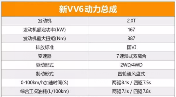 2019年7月25日,WEY 2020款VV6车型在保定正式上市,售价为14.8万-17.5万。新车型不光满足了国6B的排放标准,更是将配置与驾驶感受升级到了一个更高的阶段。 新车亮点: 1 第七代智能ADB激光大灯系统 2 LCK车道居中保持辅助系统 3 LCA并线辅助系统 4 ELK紧急车道保持 5 MOD 低速移动物体监测 6 ESP 9.3高动态版 新款VV6相比老款车型整体造型基本没有变化,主要还是在细节方面得到了升级,但至少可以使你不难就看到它的变化。 在外观方面延续了WEY家族一贯的设计语言,整体风格很硬派,黑豹式仿生前脸造型极具视觉冲击力,中网及雾灯罩、大灯及雾灯都采用了新式造型,质感得以提升。 车身侧面整体来看较为饱满,线条流畅,其长宽高分别为:4625mm/1860mm/1720mm,轴距为:2680mm,与老款车型保持一致,皆采用0.618黄金分割比例设计。 尾部的双边四出式排气布局十分彰显运动气息,车尾造型较为饱满。两侧大灯通过一条较粗的镀铬饰条相连接,整体设计更为简洁。 新VV6内饰则延续了WEY品牌一贯的设计造型,提供有黑棕、棕米、黑色以及新增的蓝灰等4种配色。 四幅式多功能方向盘采用了全皮包裹,粗细程度适中,握感一般。左右两侧的多功能按键十分丰富,滚轮加按键的设置较为实用,左侧为多媒体功能,右侧则为语音唤醒及巡航等功能。 12.3英寸全彩液晶仪表盘显示效果十分清晰,新VV6显示页面较比老款车型经过了重新设计,显示信息则更为丰富。 新VV6还有一项升级就是,中控屏由原来的9英寸升级为12.3英寸,依然是悬浮式设计,并采用了安卓最新8.0 O-MR1系统版本的主机,分辨率达到了1920*720。 同时还采用了讯飞飞鱼2.0智能语音识别系统,可用于控制座椅加热、通风、车窗、导航、多媒体娱乐等功能,语音唤醒识别率很高。 通过4颗百万像素大广角高清摄像头采集到的车辆四周环境影像可通过3D全景呈现,也可自由切换角度,降低视觉盲区。 音响系统采用了lnfinity12扬声器品牌,提供6点最佳听音位,主驾驶、全车、前排、后排、儿童睡觉、老板位等,并配有主动降噪功能,音效十分出众。 中央通道挂挡机构两侧集成了ECO模式、方向盘阻尼调节、车身稳定系统开关、陡坡缓降、主驾驶座椅功能调节、自动启停、主动安全、全景影像、副驾驶座椅功能调节、五种行驶模式(普通、运动、雪地、泥地、沙地等)。下方还采用了跃层式设计,极大程度提升了储物空间,整体来看功能很全,这种按键布局设计也凸显了豪华质感。 空调控制面板采用了物理式按键设计,非常便捷实用,下方还配有一块全新升级的15W无线充电器,相比老款5W在充电速度方面得到了提升。 中央通道扶手箱后部上方配有PM2.5空气净化器出风口及两个USB插口,下方配有单扇开关调节双出风口,为后排乘坐者提供了非常便捷且舒适乘坐环境。 超大的全景天窗设计为车内提供了很充足的采光面积,天窗前部支持完全打开。 座椅采用了NAPPA皮包裹,主驾座椅配有12向电动调节,三组记忆、加热、通风、迎宾、按摩、座椅香氛系统等一系列高端舒适配置。 2020款VV6车型搭载型号为E20CB的2.0T 涡轮增压直喷发动机。完全满足国6B排放标准要求。 新款VV6相比老款在很多方面都得到了实质性的提升,同时这也是WEY家族的第一款搭载博格华纳四驱系统的车型(顶配车型),使它可以更好地去应对更复杂多变的不同路况。可以说新款VV6是个诚意十足之作! |