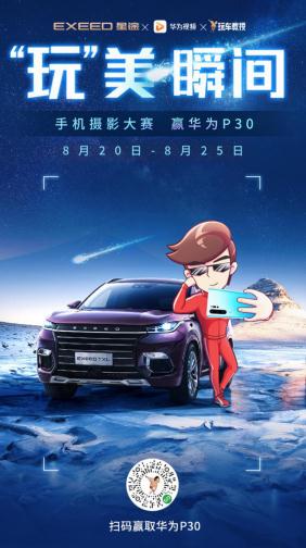 2019年8月20日,由EXEED星途联合华为视频举办的“玩”美瞬间手机摄影大赛开始活动正式开始。从8月20日至25日,参与者可通过玩车教授,或在星途EXEED官方微信通过识别二维码报名参赛。 在摄影大赛专题页上,每一位参与者都可以上传通过手机拍摄的美图或视频,带话题#“玩”美瞬间手机摄影大赛#进行活动的参与。活动前三名的获得者,更可获得华为P30手机作为奖品。 惊喜不只这几天,敢超越,星途是认真的。在9月份,EXEED星途还将与华为视频平台继续进行作品征集,奖品将比华为P30更加诱人。感兴趣的朋友可以持续关注EXEED星途官方微信和微博,大奖绝对超乎你的想象。 当然,对于EXEED星途而言,通过此次与华为的跨界联合,EXEED星途将与更多消费者一起,记录普通用户生活中的美好,提高EXEED星途与受众之间的情感关联,并进一步提升年轻消费者对EXEED星途,这样一个中国汽车新高端品牌的喜爱和认可。 其实,这并非星途第一次与跨界品牌展开的联合营销举措,作为一个为年轻消费者打造智能出行体验的全新汽车品牌,为了更加贴近目标消费群体,EXEED星途除了通过自身产品作为行走的名片来传递这一理念外,更持续不间断地与各种时尚元素相融合。 在此次活动之前,EXEED星途已经先后与小米跨界合作,并赞助了腾讯网综《知遇之城》,通过这一系列的跨界营销,EXEED星途正不断打入年轻人的生活圈。以年轻人喜欢使用的流行产品、喜欢收看的视频节目,以及年轻人最容易接受的触媒习惯,向他们传递出EXEED星途品牌“敢超越”的品牌态度。显然,这已不单单是在产品力上的超越,更是营销方式上敢为人先的超越。 作为耐用品,汽车的确与快消品存在着质的区别,动则十几万的价格的确需要消费者在购买前充分考虑各种因素。但即使汽车很重,也并不意味着汽车品牌会变得笨重,只有身段轻盈,勇于尝试最新的事物,与时尚潮流紧密结合,真正敢于跨出预设好的界限,才能让品牌的发展潜力无限扩大,这也是为何EXEED星途要屡屡“玩跨界”的原因。 不仅如此,EXEED星途的跨界营销模式,更生动地诠释了一个全新的中国汽车新高端品牌,为赢得用户心智而采取的营销巧思。从更高层面上来说,也正是因为星途拥有敢超越、不设限的态度,在对年轻一代消费群体的争夺中,才能够抢占先机,迎来星途无限可能! |