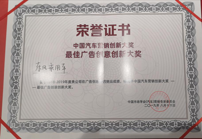 8月16日,由中国市场学会和搜狐汽车联合主办的“第十六届中国汽车营销首脑风暴”峰会于贵州遵义盛大召开,在这场这场聚合汽车营销人的权威盛会上,东风乘用车公司凭借过硬的品牌实力和“《你不喜欢吗》微电影”营销案例的卓越表现,一举斩获“中国汽车营销创新大奖——最佳广告创意创新大奖”。能够在众多参选案例中脱颖而出,东风风神证明了其超凡营销能力与产品的不俗实力。