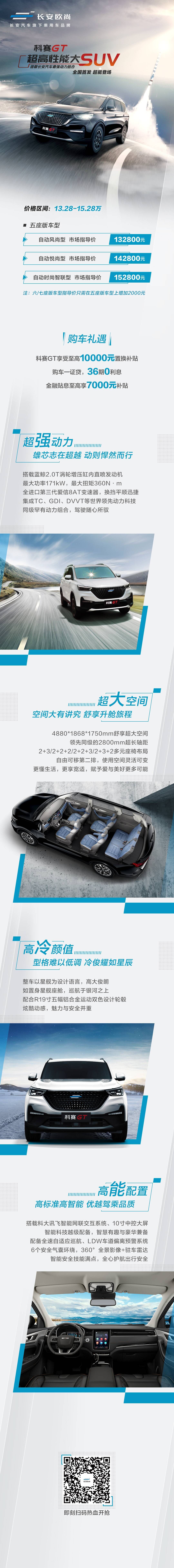 为生活,他们激情满满 为家庭,他们奋勇向前 为社会,他们日夜兼程 而为自己,这群依然心怀激情的新中产 将如何满足自己与生俱来的渴望驾驭的性格本能 去征服所有的不服? 超高性能大SUV ——科赛GT已有答案 中国社会的消费结构是一个纺锤形,处于中部的人士一直在通过自己夜以继日的努力和付出推动着整个社会的发展。而这一群人,他们或处于激情满满的青年时代,或即将步入而立之年;他们开始考虑家庭、父母、孩子的种种责任,也同样考虑事业、晋升、财富等个人发展;他们日夜兼程,攒足口袋,积极奋进,不断满足家庭的需求,不断实现自我的提升,每天创造或小或大的成就感,并保持一股不能停的冲劲。在汽车消费上,也是如此,他们需要选择一辆空间够大的产品来满足家庭的出行诉求,但市面上大多数大空间的产品往往都只保留了空间感和舒适性。可是人类与生俱来的渴望驾驭的性格本能,该如何满足呢?车子作为成年人的“大玩具”,谁不希望自己的“爱车”能有一点“可玩性”?任何人都有需要速度感的一刻。可是“大空间”和“高性能”,到底对于一个“爱家”的消费者,该如何平衡?该如何做取舍?今日上市的长安欧尚科赛GT给出了答案。 科赛GT定位为超高性能大SUV,它所面向的正是这群“依然心怀激情的新中产”,希望在2800mm轴距以及灵活多变的座椅布局的空间优势下,凭借长安蓝鲸2.0T+全进口爱信8AT,给努力向上生活的“爱家”用户一个释放荷尔蒙的世界。科赛GT本次上市共推出自动风尚型、自动悦尚型、自动时尚智联型3款车型,售价区间为13.28-15.28万元。同时,科赛GT享受至高10000元置换补贴;购车一证贷,36期0利息,金融贴息至高享7000元补贴。 很显然,继长安欧尚科赛市一周年之后诞生的科赛GT,不仅丰富了消费者在高质量产品方面的选择,更是从根本上解决了消费者的选择矛盾点,给这个级别的产品一个全新的价值定义,给用户带来生活和自我更高价值的体验。今年长安欧尚X7将推出旗下大美都市精品SUV——长安欧尚X7,它经过多次严苛试验,是一辆上过太空的SUV,今年7月25日13:00随“长安欧尚汽车”号火箭进入太空进行史上首次太空真实环境测试。还是一辆能装40人的SUV,今年8月31日长安汽车垫江试验场成功挑战40人装载并打破记录,同级车轴距空间最大;同时,长安欧尚X7还是一辆能轻松完成200km/h的SUV——2019年8月31日长安汽车垫江试验场雨天轻松完成200km/h高环测试。重要的是,长安欧尚X7作为一辆最智能的SUV,APA5.0一键全自动泊车系统、全方位超高清“千里眼”远程视频系统、同级独有人脸识别系统、IMA8—5G兼容车机芯片、开放式OnStyle2.0车机系统等全场景智慧生态系统集一身。长安欧尚汽车秉承“以用户为主导”的核心理念,除了为用户打造品质可靠的产品之外,还贴心的为用户提供惊喜福利。9月15日起开启长安欧尚X7惊喜大放送。即日起用户在欧尚style支付188元下定长安欧尚X7,即可抢价值688元太空珍藏版锌合金车模(限量10000),分享再获100元现金大红包。 天生一个优等生,喊出“逆势而上”的底气何在? 2018年4月,长安汽车发布全新品牌架构,长安欧尚汽车作为长安汽车旗下全新乘用车品牌正式面世,短短一年半的时间里,科赛、科尚、2020款科赛、科赛3、科赛5以及今日发布的科赛GT、即将面世的长安欧尚X7等多款乘用化车型迅速填充产品矩阵,也正式形成了包含科赛GT在内的长安欧尚科赛家族体系。相较于同期发布的大量新造车势力和新品牌,长安欧尚汽车这个新品牌,缘何有如此成熟的实力和效率?这不得不提及长安欧尚品牌背后的好底子,得益于共享长安汽车全球研发及万人研发团队,共享长安汽车全球研发体系、全球供应商体系及整车生产制造体系,长安欧尚汽车在产品技术实力及研发效率上,与同期发布的新品牌相比,无疑远远赢在起跑线上,天生一个优等生。 蓝鲸2.0T+爱信8AT,诠释何为黄金动力 依托长安汽车集团强大的平台实力应运而生,科赛GT搭载长安汽车最强动力组合——蓝鲸2.0T涡轮增压缸内直喷发动机+第三代爱信8AT变速器,可比肩40万级豪华SUV动力组合。该动力由长安集团总部与英国中心协同研发,拥有强大核心零部件供应体系,强大平台化研发技术成就了科赛GT越级的动力性能。该套动力组成历经多年市场考验,在稳定性方面一直保持良好用户口碑,轻松实现9秒破百,创造了经久不衰、同级罕有的辉煌。据悉,作为全新的动力组成,已搭载在长安CS85 COUPE车型并经过市场检验。该发动机最大功率达到171kW,最大扭矩达到360N·m,比肩3.5L自然吸气发动机。 科赛GT搭载的全进口爱信8AT变速箱,换挡响应时间不到0.8S,不论是加速还是减速,爱信8AT变速箱带来的瞬间响应,不论是身处都市车流中,还是空阔大道上,都能为依然心怀激情的新中产用户们带来随心而驭的驾驶快感。而爱信变速器领先世界的平顺性和DVVT技术带来的综合低油耗,也使得科赛GT在满足“爱家”用户对家庭出行的舒适性和家用经济型的需求上领先同级车型。值得一提的是,科赛GT搭载的全进口爱信8AT变速箱属于沃尔沃XC90同款,成本高出同级自主品牌一些DCT和CVT变速箱1.5-2万。这样的用料和品质,足见长安欧尚汽车“以用户为主导”的诚意。 有容乃大,空间比肩汉兰达,破局中大型SUV市场 在空间设计上,新车为驾乘人员打造了同级最优的“第三排内部空间”。新车长宽高