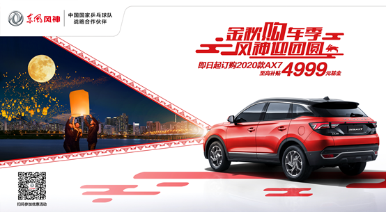 时间都去哪儿了,还没好好感受夏天,金秋九月就已过半旬。生活往往来日方长,但“假期”可真的是稍纵即逝。“十一”来临之际,相信大家满怀的不仅是对祖国即将迈入70周年的自豪与喜悦,咱们这些寻常上班族日夜期盼的黄金周假期也即将来临!在这个一年里中长的假期里,每个人都想卸下肩上的包袱和心头的劳累,全身心纵情放松于山水之间。值此金秋时节,谁不渴望拥有一辆自己的出行座驾,享受轻松出行的便捷旅途呢?也许聚集各式越级实力的东风风神2020款AX7正是实现梦想的至优选择。 动力迅猛,出行路上的性能坐骑 中国幅员辽阔,美不胜收之地不计其数,国庆黄金周驱车出游,难免会碰到复杂多变的路况。这个时候,一台动力强劲且不失舒适性的汽车,就如同一匹贴身的坐骑,带领主主人无往不至。 热爱生活和崇尚旅游的你是国庆舞台剧的主角,而手上的2020款AX7则是最好的道具。东风风神2020款AX7搭载第二代EP6 1.6THP发动机,匹配爱信第三代6速手自一体变速箱实力背书,动力澎湃,并增加电子换挡系统,速由心生,超车并线,总会信心在握。这套家用足够能撒野的动力系统,工况油耗低至7.0L/100km,是居家旅游的最佳选择。 东风风神2020款AX7更聘请欧洲豪华品牌底盘专家评价指导精细调教底盘,采用欧姆龙第四代转向控制器,不论行驶在铺装铺面,或复杂路况,皆能沉稳应对,给消费者带来极致的驾控体验,它历经百万公里层层考验,日常代步,与你体味生活的柴米油盐,自驾出行,陪你寻找诗和远方,在操控性、舒适性、经济性方面超越同级,都是极具性价比的选择。 空间更大,心胸宽敞装下世界 熙熙攘攘出游天,大包小包放车间——每每想到出行难以解决的行李和包袱问题,旅游的热情瞬间褪去大半。但开着东风风神2020款AX7,一切都是那么简单,行李再也不会是问题。东风风神2020款AX7在交互几何理念下诞生的车身线条更具力量感,外观犀利凌动,尽显SUV的大气之美。其2715mm轴距、1880mm车身宽度以及丰富的收纳空间,远超同级,后备箱足够大,装下出行所需一切用物,毫无压力。另外,它配备感应式电动尾门,可以通过脚踢感应开启,带高度记忆和防夹功能,开合间尽显风度,在国庆出游的路上也是一个靓丽的风景。 长时间驾驶游玩,虽然很累,但也很值得。东风风神2020款AX7配备驾驶席电动腰部支撑、驾驶席座椅迎宾记忆功能、后排座椅角度无级调节功能,给予驾乘者更舒适的乘坐体验。 内在方面,东风风神2020款AX7拥有1.17平方米同级最大面积全景天窗、100%遮光帘布,开启可拥有宽广视野,能看到更大的星空,关闭能遮挡紫外线。便捷配置上,包含LOGO照地迎宾灯、外后视镜倒车自动调节+记忆、下雨自动关闭天窗/车窗,通过仪式感和细节之处的设计,让每一次出行都尽享便捷。 智能赋能,自驾赏秋好搭档 国庆黄金周近在眼前,如果旅游攻略还在看地图那就是在OUT了。有东风风神2020款AX7超强智能车机陪伴,用尖端科技点燃你的油然欢心。 一句“你好,风神”即刻开启智慧之旅,97%的语音识别率,可以快速检索目的地。WindLink人工智能车机系统,凭借高性能四核处理器(4G内存+32G超大储存)及百度云端强大数据支持,它不怕长句,不怕打断,你说它做,带来更为迅捷的检索体验,景点简介、门票价格、导航路线、住宿餐饮推荐,悉数奉上。还可以通过语音控制开启车窗、天窗、空调、雨刷器。在空气晴朗的夜晚,你说“我想看星星”,天窗会自动打开,在车内感觉太热,你说“我好热啊”,空调温度会自动调低。更有手机APP远程控制功能,可以提前开启车内空调或暖风,夏日拒绝“蒸烤”,冬日拒绝“冷冻”。 东风风神2020款AX7拥有12.3英寸智能全液晶动态仪表同10.25英寸超清720P全贴合电容触摸屏,双屏联动,不止于大,更有卡片式UI界面,操作简便,触感流畅,确保驾驶过程中操作的安全性,更通过升级优化,增加品牌卡片功能,内含品牌专区、车主福利和车主之声,方便厂商向用户推送品牌资讯、厂商福利、车主活动,消费者更可通过车主之声提交客户意见,帮助厂商改善产品和服务。所有这一切都是拜科技所赐,东风风神2020款AX7以更出色硬件配置、交互界面和软件运行,给予你日常出行和长途驾驶更出色智慧出行体验。 双重守护,一段旅程一路平安 道路千万条,安全第一条。在国庆黄金周出游中,保障家人安全才是最重要的事例。对于这个,东风风神2020款AX7则以内外结合的安全防护,带来最满意的结果。在被动安全方面,2020款AX7采用高强度笼式车身结构,车身骨架高强度钢占比超过67%,配备主/副驾驶席安全气囊、主/副驾侧安全气囊,同时,配备ISO-FIX儿童座椅固定接口,方便安装儿童座椅,给予儿童最妥帖的安全保护。 在主动安全方面,越级搭载EPB电子驻车制动系统+Auto-Hold自动驻车系统、FCW前碰撞预警系统、AEB刹车辅助系统、HDC陡坡缓降系统、BSD盲点监测系统等智能科技,智在守护驾乘安全。同时,配备超清360°全景影像、前后探测雷达及自动泊车系统,在通过狭窄区域、低速行车及倒车时,减少盲区,为车主带来安心视野。 今年这个最值得纪念的国庆黄金周不容错过,东风风神更为圆梦轻松自驾出游带来了金秋购车季的多重福利。为了回馈新老客户长久以来的关注与支持,即日起至2019年10月10日,凡订购东风风神2019款AX7(国六畅享版)、2020款AX7(国五)和2020款AX7(国六)车型,支付99元订金,分享活动信息至朋友