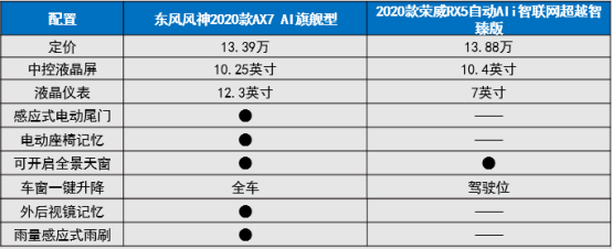 今年下半年的车市好不热闹。随着众多品牌车型扎堆上市,消费者对此应接不暇。对于SUV新手来说,如何选择一款最适合的座驾,已成为一个绕不过弯的坎儿。远的不说,都在下半年上市的东风风神2020款AX7 AI旗舰型和2020款荣威RX5自动Ali智联网超越智臻版就备受公众的关注。同为13万左右价位的自主SUV,究竟谁的产品力更强?谁的性价比更高?让我们同级比较,看看东风风神2020款AX7 AI旗舰型和2020款荣威RX5自动Ali智联网超越智臻版两款新车如何闪耀自己的“德智体美”。 踏实可靠者厚德,价格优惠谁更诚意? 跟往常不一样,这次我们先从消费者最关注的价格和优惠层面讲起。 据官网介绍对比,2020款荣威RX5自动Ali智联网超越智臻版定价13.88万元,质保政策为比较常见的5年或10万公里质保;相较之下,作为东风风神2020款AX7的顶配,它的AI旗舰型定价仅为13.39万元,但这款车不只全系支持基础流量终身免费,车机系统的服务流量还五年不限量,更推出十年不限公里数的超长质保,实惠程度的确相当出众。 无论是定价,还是提供的重重优惠政策,这款顶配的2020款AX7 AI旗舰型更显踏实,真心为车主日常用车精打细算。 善解人意者多智,智能实力身怀不凡 善解人意不仅讨人喜欢,也是善于思考的表现——汽车也是如此,要成为一台善解人意的车,就得同时具备完备强大的智能科技和完善的安全保障。 对于车机智能功能来说,“又全又细”是考量的硬指标。在这个方面,东风风神2020款AX7 AI旗舰型和2020款荣威RX5自动Ali智联网超越智臻版都颇有造诣,但相比之下,2020款AX7更像一位行家里手。 2020款AX7采用了新一代WindLink人工智能车机系统,作为人工智能车机的最新成品,其四核处理器和4G内存速度比寻常智能系统反应更快,搭载超精准智能语音系统,可实现更多的语音指令操控。不仅如此,虽然两款车型都搭载有车联网和OTA在线升级服务,但是WindLink人工智能车机系统在2020款AX7定价11.99万的入门版上就已配置,让体验智能出行的门槛更低;与此同时,想要享用新版荣威RX5这款系统,最低门槛就得是13.88万的自动Ali智联网超越智臻版了。 与此同时,同在13万左右的价位,荣威RX5自动Ali智联网超越智臻版还不支持手机映射,与提供有Carlife车机互联的东风风神2020款AX7相比,智能体验当然又稍逊一筹。 配置全面者领先,智享功能谁更高大全? 讲到科技领先性,智能配置也是其中不得不提的地方,在如今国产品牌的日益壮大发展下,13万左右的定价已经能为消费者带来远超合资品牌的配置享受。作为其中的佼佼者,今天来进行对比的2020款AX7 AI旗舰型与新款荣威RX5自动Ali智联网超越智臻版自然也都有着不俗表现,不过要论智能配置的丰富度,焕新而来的2020款AX7却比定价高出一截的荣威RX5更显厚道。 从提升出行的便捷舒适来说,2020款AX7不仅与对比款荣威RX5一样具备有前排座椅电动调节+加热、可开启全景天窗、带有位置记忆功能的电动尾门、无钥匙进入+启动系统等功能,它更多设置了一个后排USB接口,再加上12.3英寸的全液晶仪表、全车车窗一键升降、外后视镜记忆、电动座椅记忆、电动尾门感应开启、雨量感应雨刷等细心配置,在给车主更多方便之余,也体现其配置极具人性化的理念。 在行车安全方面,东风风神2020款AX7 AI旗舰型也比2020款荣威RX5自动Ali智联网超越智臻版更有发言权。 东风风神2020款AX7 AI旗舰型,不仅将定速巡航、自动驻车、ESC+ABS+定系统等列为全系标配;在主动安全方面,东风风神2020款AX7 AI旗舰型更比定价更高的对比款荣威RX5多出BSD盲点监测系统、FCW前碰撞预警系统、AEB自动紧急刹车系统、百万像素的360°全景影像、自动泊车入位和发动机启停等优势,在智能安全保障上更有料。 就车身的坚固度而言,同为笼型安全车身结构,2020款AX7 AI旗舰型搭载更为强悍的67%车身骨架高强钢,超高强钢用量接近40%,B柱则采用1500MPa级热成型钢,门槛梁采用的1000MPa级第三代先进高强钢,再加上车尾处后超高强度钢防撞梁(带吸能盒设计),比2020款荣威RX5自动Ali智联网超越智臻版仅为65%高强度钢更更加坚实。投入更多,主被动安全紧密结合,2020款AX7把行车安全全面落实。 持续稳定者体强,行车动力谁更强劲? 人人都渴望有一个强健的体魄,它不只包括壮硕的身材,更重要的是要拥有强大坚韧精气神,对于汽车来说,动力就是它的精气神。 说到动力,2020款荣威RX5自动Ali智联网超越智臻版的1.5T涡轮增压发动机颇有实力,最大功率124kW,峰值扭矩250N·m,同时匹配TST 7速双离合变速器。不过同台竞技之下,2020款东风2020款AX7 AI旗舰型的动力表现更加优秀。它不仅搭载具备纯合资血统的新一代EP6 1.6THP发动机,在宝马最新的TVDI技术赋能下,以双通道涡轮增压、连续可变气门升程和高压缸内直喷技术支撑,不仅整体动力、加速表现和输出稳定性方面更加经得起考验,其动力参数也得以提升,最大功率达125kW,最大扭矩为250N·m,而其综合油耗仍控制在7L/100km。此外,与之相匹配的是爱信第三代6AT变速箱,还新增电子换挡与换挡拨片等配置,技术更加成熟,操作更便捷、时刻处在轻松自如的驾驶中。 赏心悦目者为美,外观造型谁更惹眼? 爱美之心,人皆有之。车型外观是广大年轻人选车的一大要素,相较于传统设计,与时俱进的外观造型更符合他们的胃口。 2020款荣威RX5自动Ali智联网超越智臻版采用荣威家族“律动美学”设计,倒梯形格栅贯通布